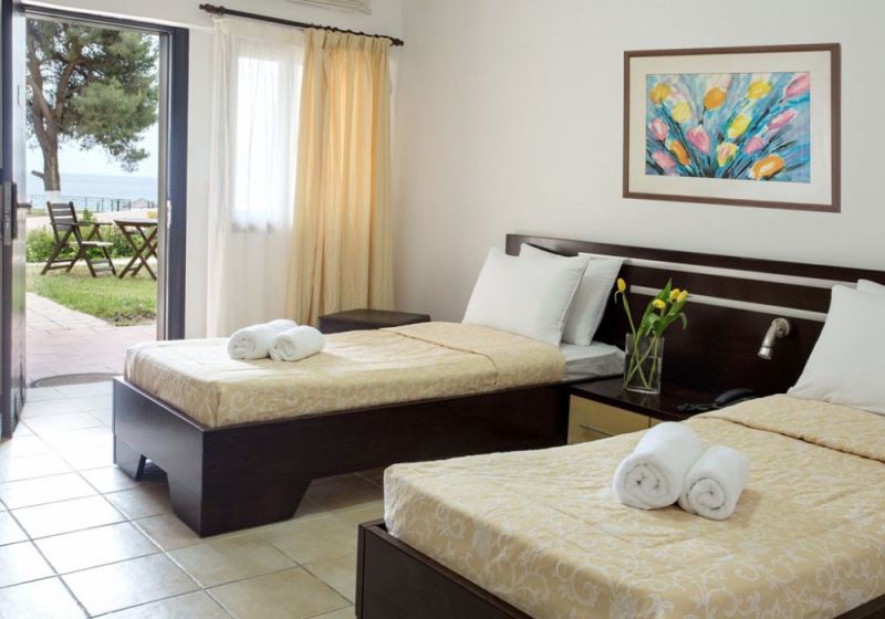 В 85 км от аэропорта г. Салоники, в 4 км от поселка Сивири, на берегу моря.