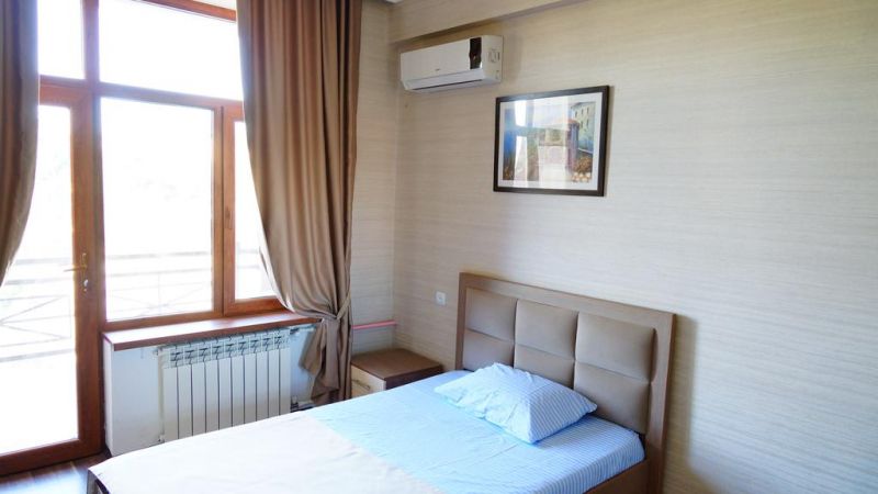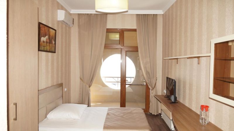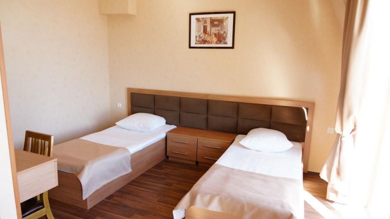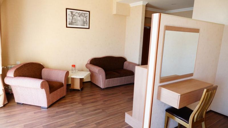 Комфортабельные и уютные жилые корпуса отвечают современным требованиям. К услугам больных одно и двуместные комнаты со всеми удобствами. Увлекательно и интересно организуется досуг отдыхающих. Прогулки по территории санатория, морские купания, отдых на пляже, кафе и чайхана займут свободное время отдыхающих. Тажке в санатории предоставляются различные бытовые услуги.