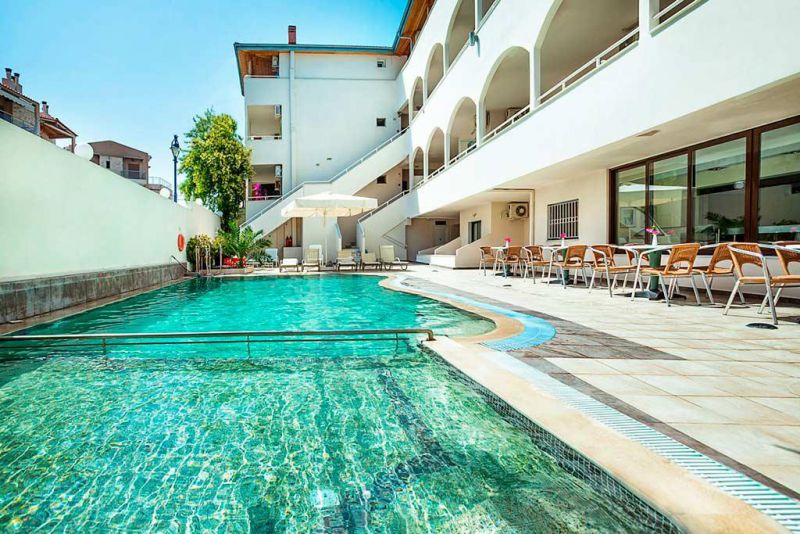 Один из самых популярных отелей для экономичного, но в то же время высококачественного отдыха. Пройдя 5 минут, гости отеля могут окунуться в колорит греческого поселка, ведь отель находится практически в центре оживленного туристического Ханиоти. Также в трех минутах ходьбы находится прекрасный, полностью оборудованный песчаный пляж.