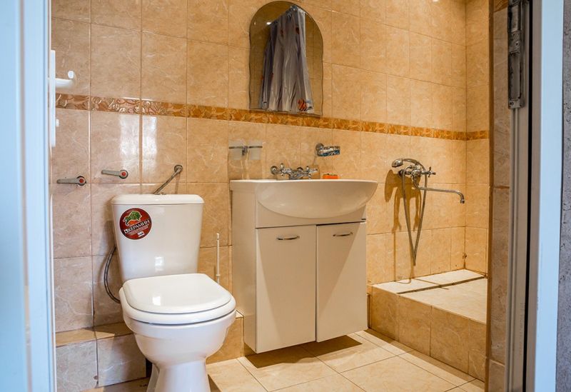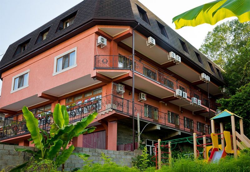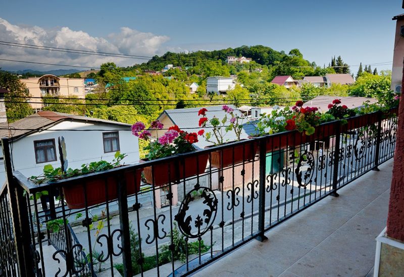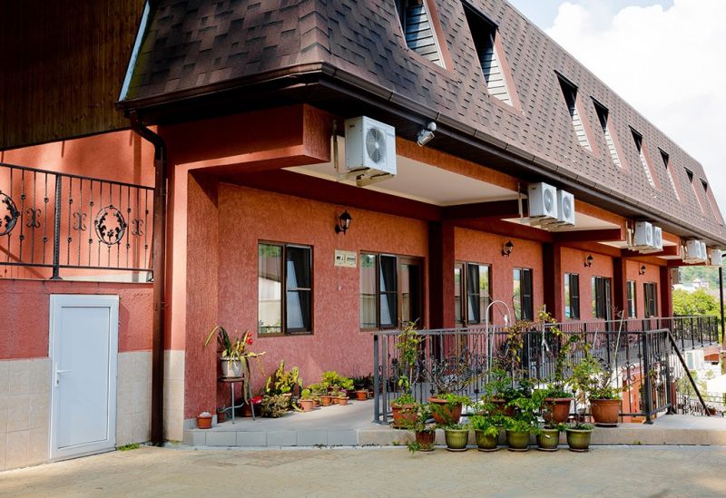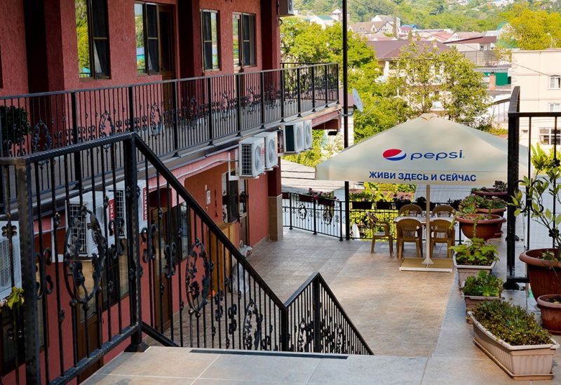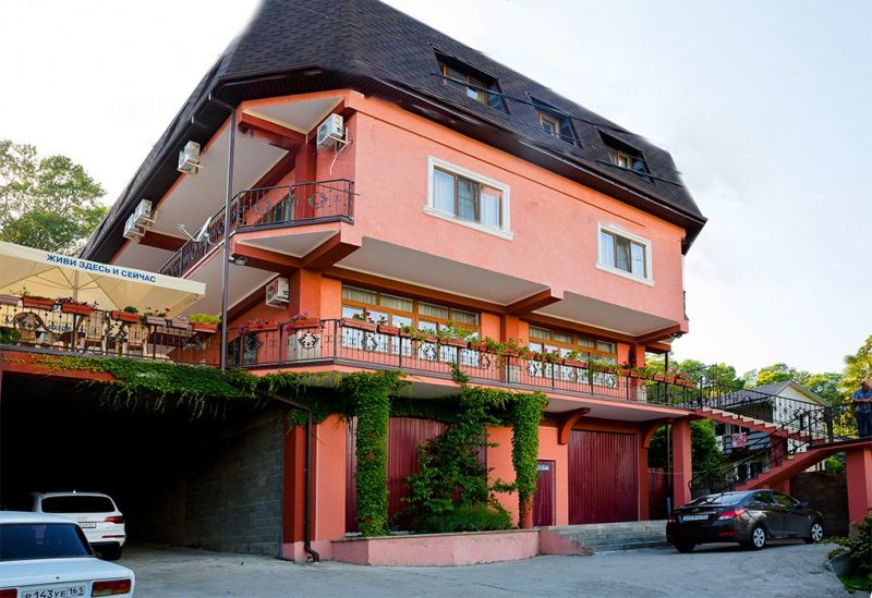 Дом расположен немного в стороне от федеральной трассы. Гостей не побеспокоит шум проходящего транспорта. На территории дома много зелени, цветов. Есть большая крытая терраса, где можно провести время в приятной компании на свежем воздухе.