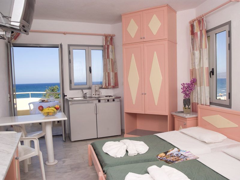 Отель 2*, соответственно ожидать номеров с джакузи очень глупо. Да старый, но простите, что вы хотели за такие деньги еще и любимый "AI - Все включено". Номер только для ночевки, а ехать и сидеть в номере..... Я не понимаю таких людей. Все компенсирует кухня. На ужин 3 вида мяса (курица, баранина и свинина), рыба постоянно, да мало фруктов, но имейте ввиду, что это остров и много привозного, соответственно и цена. На пляже есть бар "Тропикана", там за 1,5 евро (это минимум) покупаешь бутылку воды и 2 лежака и зонт твои на целый день. Брали машину в аренду непередаваемо. Путешествовали на южное побережье, горные серпантины, аж дух захватывает, Ханья с её улочками и набережной, Ретимно, монастыри. Напротив отеля в магазине и бюро путешествий работает Сергей. Замечательный человек, дал рекомендации куда съездить и когда. Кстати, рекомендую посетить базар в Ретимно, в четверг кажется, там можно приобрести фрукты и знаменитые Критские домашние сыры, апельсины по 0,5 евро за кило очень сладкие, и магазин Lidl на въезде в Ретимно. На следующий год обязательно поедем, еще не везде были, уже на 3-4 недели и в этот же отель он самый дешевый. Жили кстати в 13 номере стандарт и только дома вспомнили, что у нас не было телевизора, а мы даже не заметили, а зачем он? кондер, кстати, платный, а не нерабочий. Сестра взяли апартаменты 638 и у них регулярно не было горячей воды, зато телек 4 кровати, кухня с кастрюлями, но без воды - ха-ха.