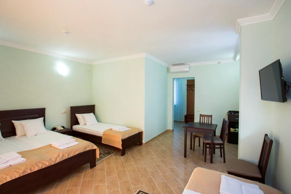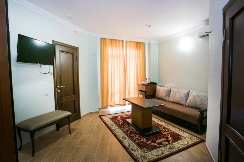 Suite (39 кв. м, 2 осн. места + 1 доп.место, двухместный двухкомнатный номер; спальня: двуспальная кровать, гостиная: мягкая мебель; вид на море; биде, халаты, тапочки, пляжные полотенца, чайный набор, доп. место - диван; макс. 3 чел.)