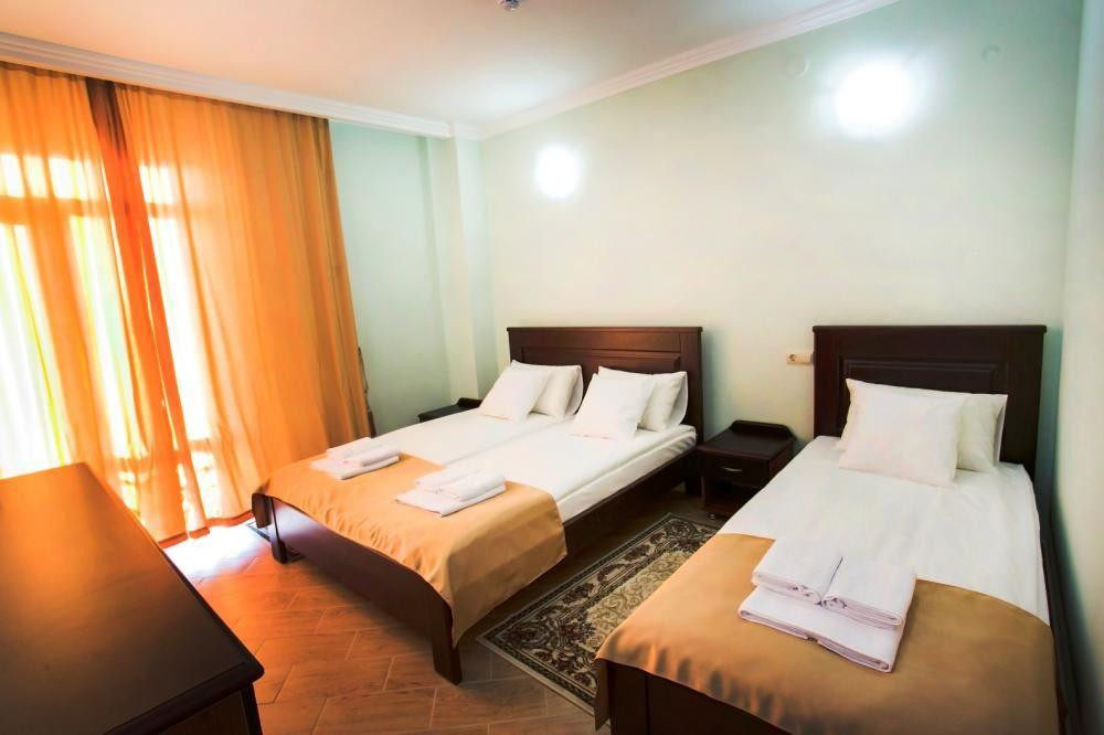 Junior Suite (26 кв. м, 2 осн. места + 1 доп. место, двухместный двухкомнатный номер; спальня: 2 односпальные кровати; гостиная: мягкая мебель; вид на горы; биде, халаты, тапочки, пляжные полотенца, чайный набор, доп. место - диван; макс. 3 чел.)