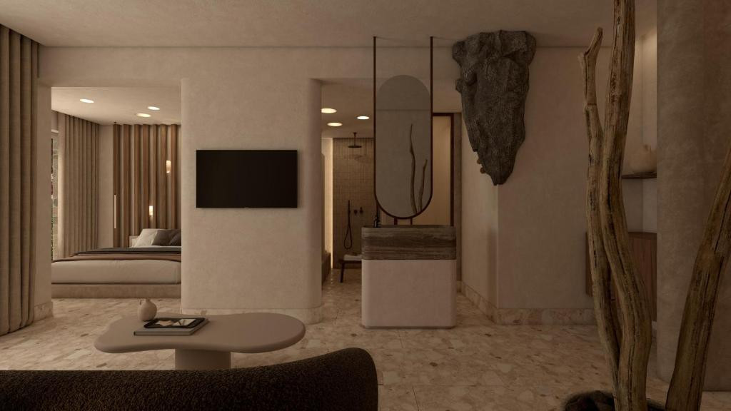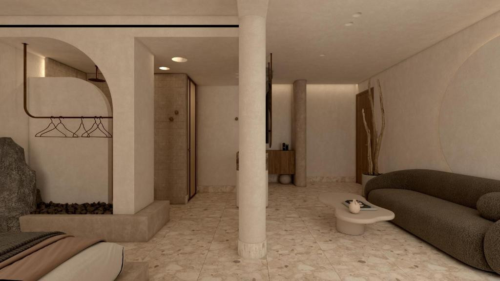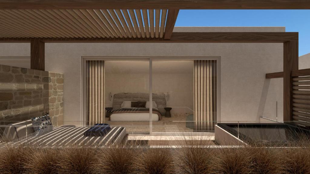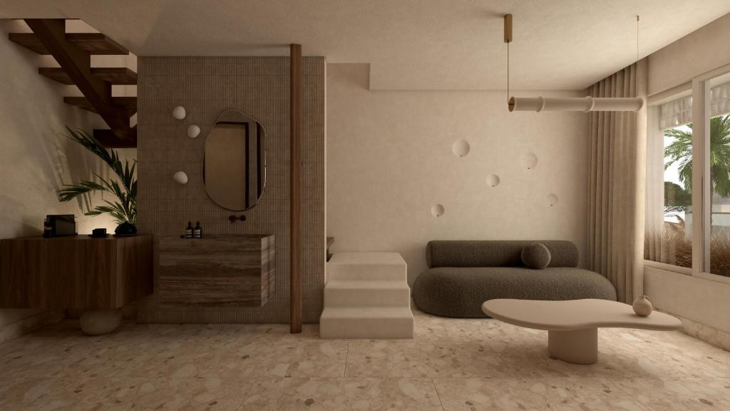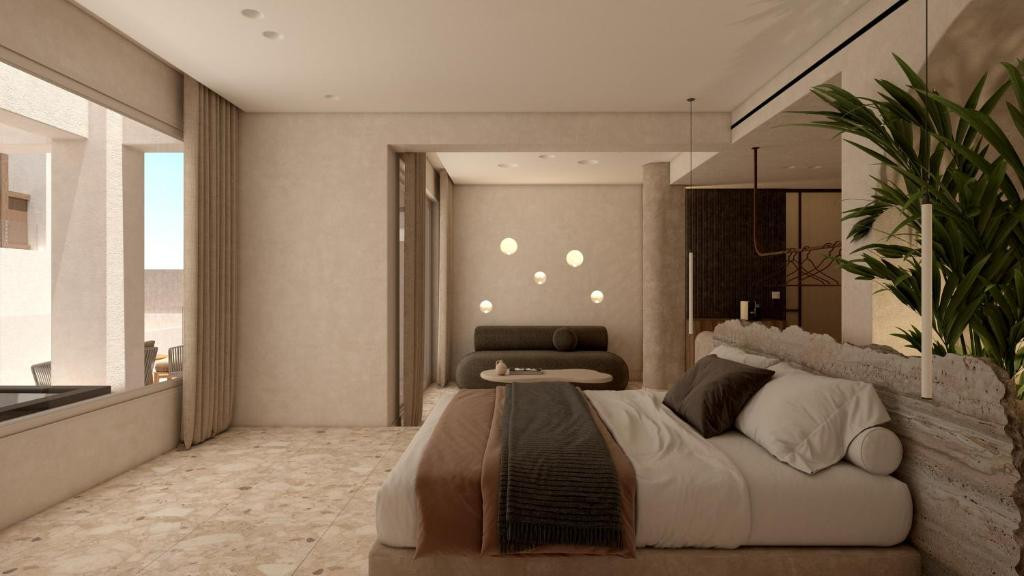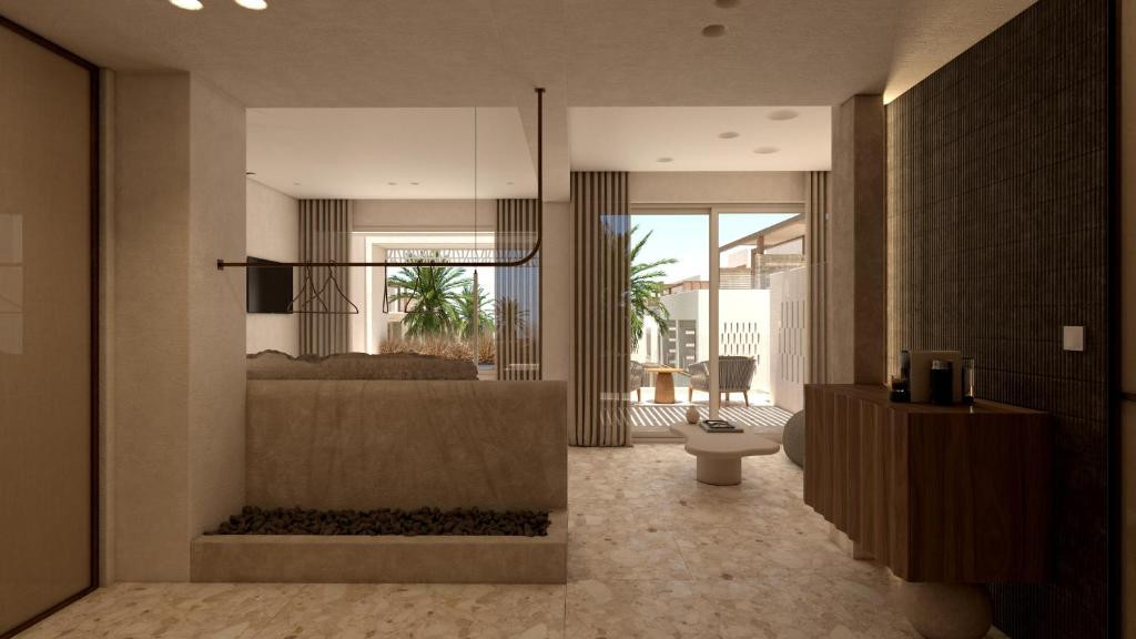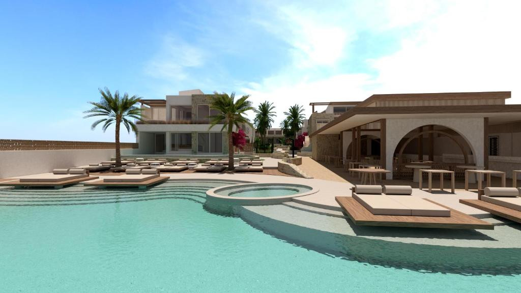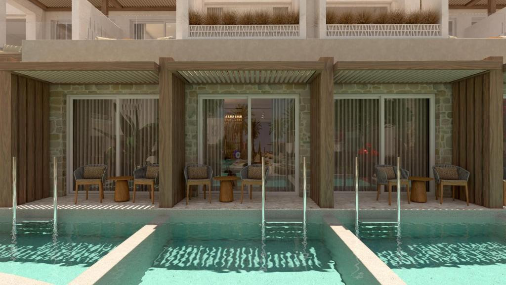 В 76 км от международного аэропорта г. Ираклион, в 73 км от аэропорта Ханья, в 6 км от г. Ретимно, на берегу моря. Автобусная остановка находится в 50 м.