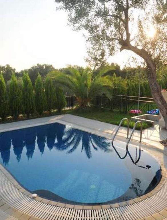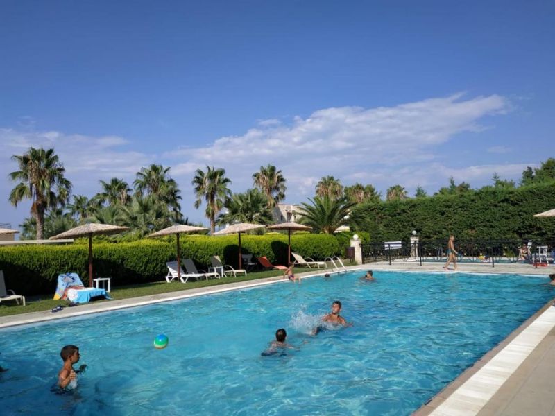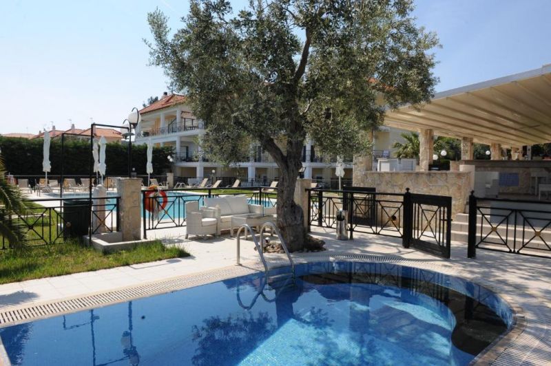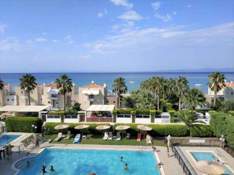 П-ов Кассандра, между посёлками Ханьоти (800 м) и Пефкохори (1,8 км), в 90 км от аэропорта «Македония» г. Салоники.