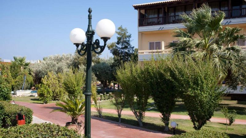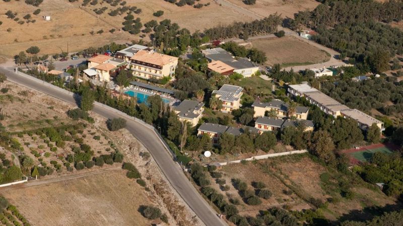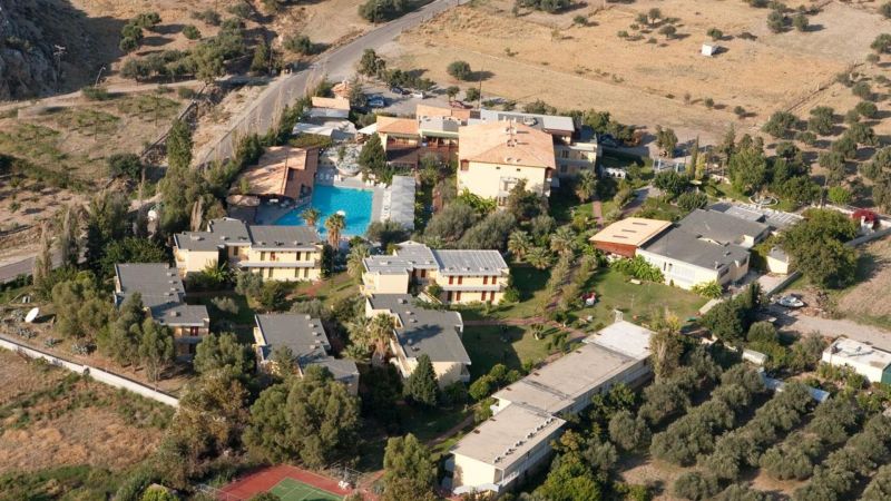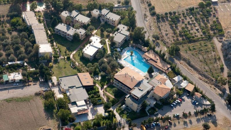 В 650 м от центра п. Колимбия, в 25 км от центра столицы острова - г. Родос, в 25 км от пос. Линдос. Состоит из центрального здания и бунгало. Территория пощадью 25.000 кв.м.