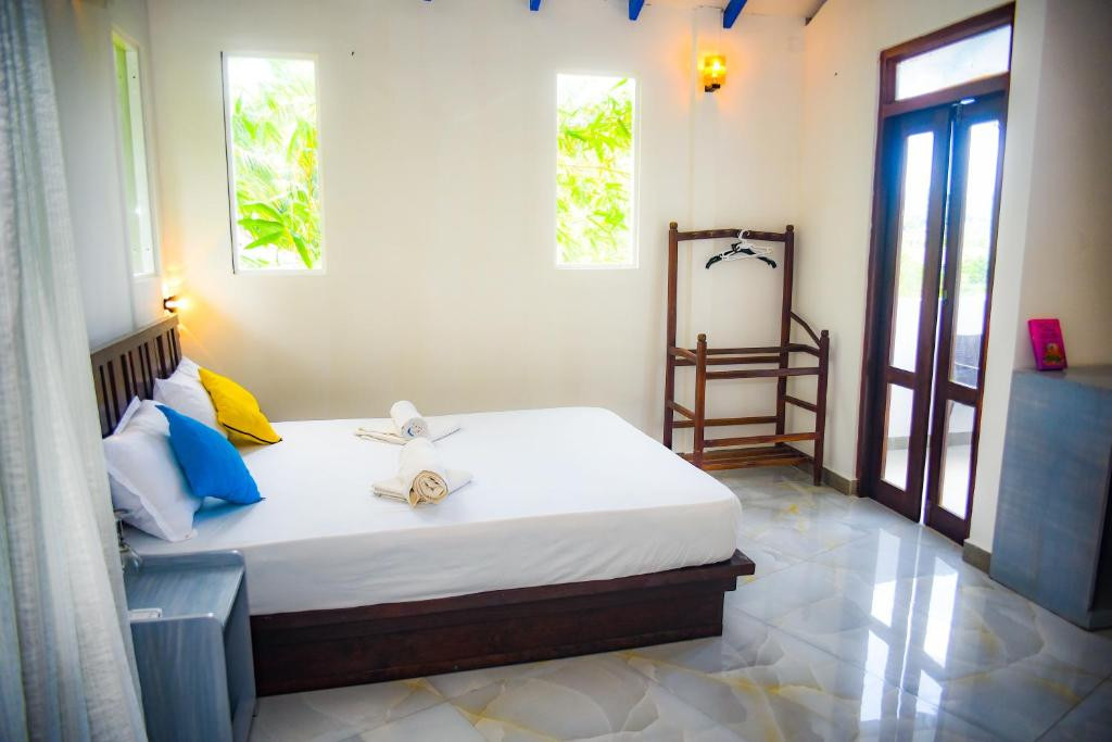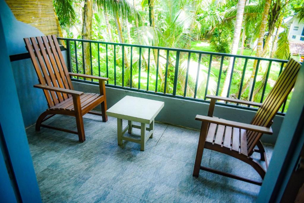 Для 2*шикарный отель. Полминуты через любое кафе и вы на океане. Расположение -5 баллов, вид с балкона - 5 баллов (смотрите прямо или вверх))), уборка -ни о чем, но обслуживают только мужчины, поэтому «понять и простить»))), завтраки пресные - яйца в любом исполнении, свежий сок, тосты с джемом и маслом, чай-кофе, один раз были бургеры, для завтрака приемлемо. Холодильник, кондиционер , душ с горячей водой, чайник, посуда для приема пищи. Если еще раз на Шри-Ланку , то обязательно выберем этот отель.