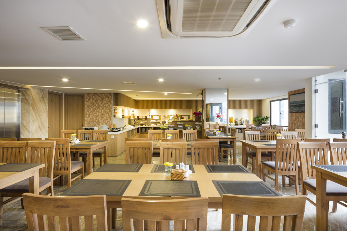 Отель нам понравился. Находится в центре, около лотоса. В отеле в принципе чисто везде, и на ресепшене и в номере и в ресторане. Персонал приветливый, отвечали на все вопросы. Уборка в номере каждый день, приходят 3 человека, меняют полотенца, моют пол, забирают мусор, оставляют 2 бутылочки воды, 2 пакетика кофе и 2 пакетика чая. При необходимости пополняют жидкое мыло, шампунь и гель для душа. Кладут одноразовые наборы с зубной пастой, щёткой и расчёской. Еда на завтрак нормальная, выбор не большой, но нам хватало. Каждое утро разные супчики фо бо. Оливье, колбаса или ветчина, спринг роллы, мясные шарики, макароны с овощами, рис. 2 вида фруктов, манник, сладкий тортик -желе, огурцы, помидоры, салат из зелени, листья салата. Кофе, чай, сок. Стоит тостер, можно сделать тосты с маслом, джемом или со сгущёнкой. Море рядом, 5 минут. У нас большую часть времени были волны. Утром спокойнее море. Пару раз мы уезжали на 23 автобусе на другой пляж, там спокойнее море и народу почти нет. Ездили на крутейший остров ВинПерл по канатной дороге над морем и брали интересную экскурсию в Далат. Вечерами можно гулять по улицам города, сидеть на набережной, пройтись по вечернему рынку, или посетить кафе, бары, рестораны. Есть бассейн, но мы в нём не купались. Итог: