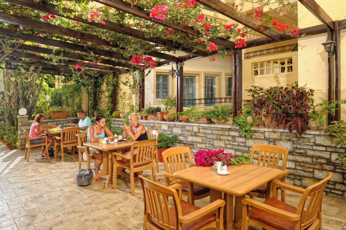 В 32 км от международного аэропорта г. Ираклион, в центре курортного местечка Малия, в 1 км от пляжа.