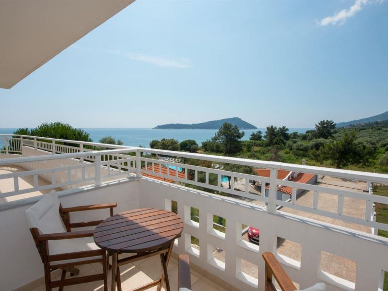 Double Superior SV Расположены на втором этаже. Двуспальная кровать или 2 односпальные, душевая кабина, халаты и тапочки. Вид на море.