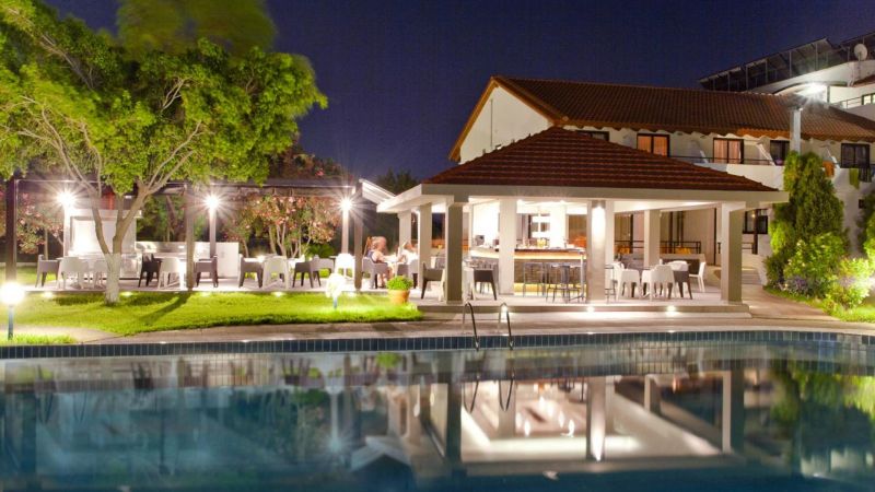 На берегу моря, в районе Ялиссос, в 5 км от центра г. Родос, в 6 км от аэропорта, в 150 м от пляжа. Автобусная остановка в 200 м от отеля.