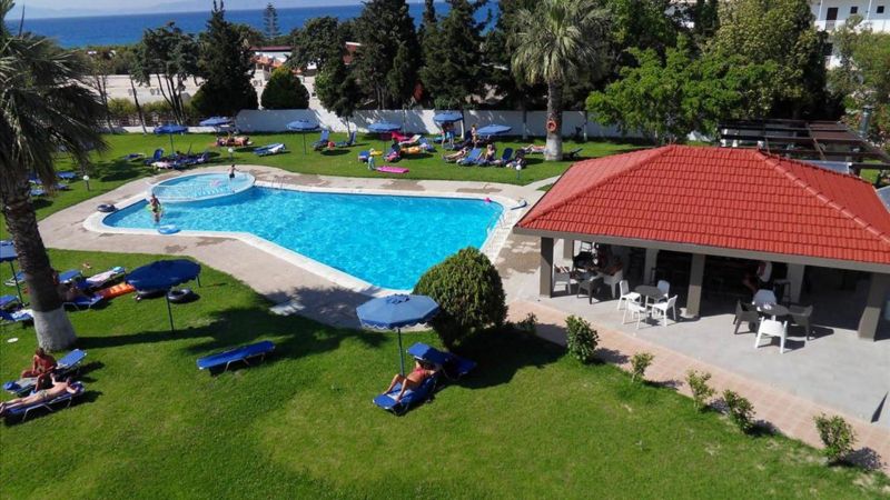 Отдыхали в конце июля 2016 г. вдвоём с мужем. Номер достался с двумя балконами (угловой). Один балкон выходил на дорогу, зато с другого было видно море!) Еда в отеле очень вкусная! На завтрак - шведский стол, на обед - по меню, можно было выбрать салат, горячее и десерт из 2 предложенных вариантов. Из напитков подавали только воду на ужин, остальное за доплату. Аквапарк находится рядом с отелем и работает не каждый день и по расписанию (за отдельную плату). Дорога к пляжу через отели, идти минуты 3, мелкая галька. Море чистое. В пешей доступности от отеля есть таверны и магазинчики. Персонал очень дружелюбный, всегда готовы помочь. Раз в неделю устраивают греческий вечер с барбекю за 10 евро (можно не ездить на большой греческий вечер на туристическом автобусе). Бассейн маленький.