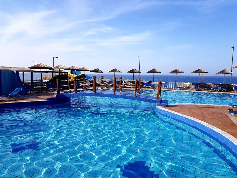 Северное побережье острова, в 1 км от центра города Херсониссос, в 25 км восточнее г. Ираклион и в 25 км от аэропорта Никос Казандзакис.