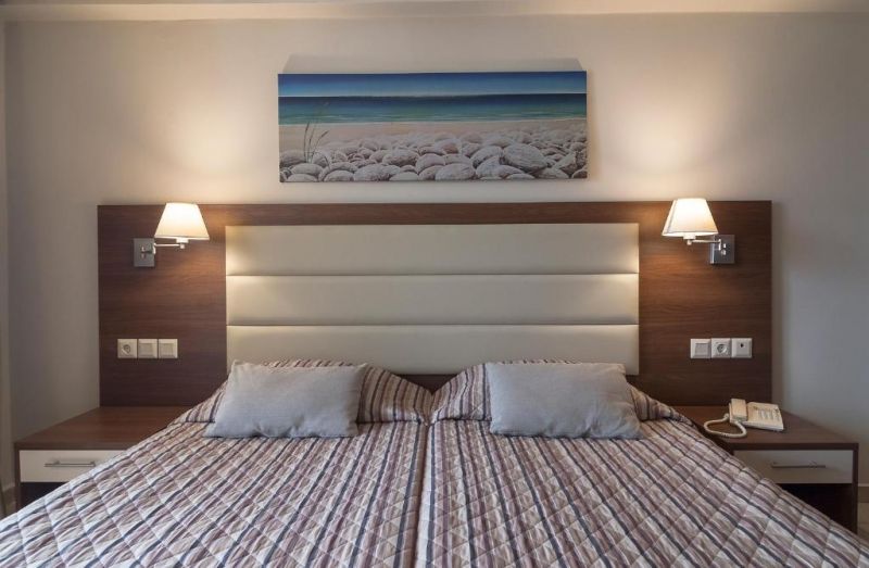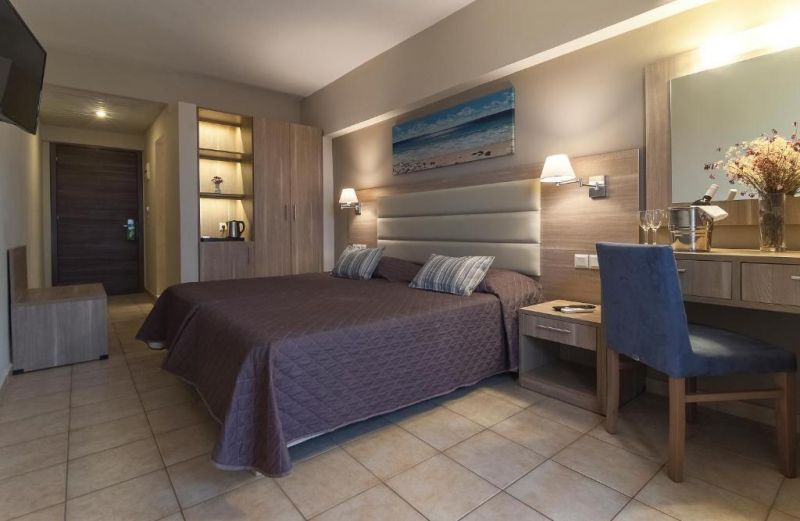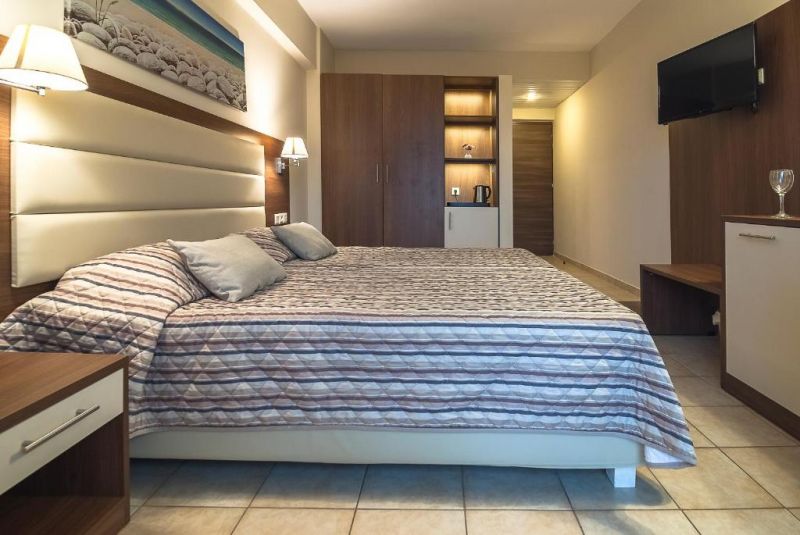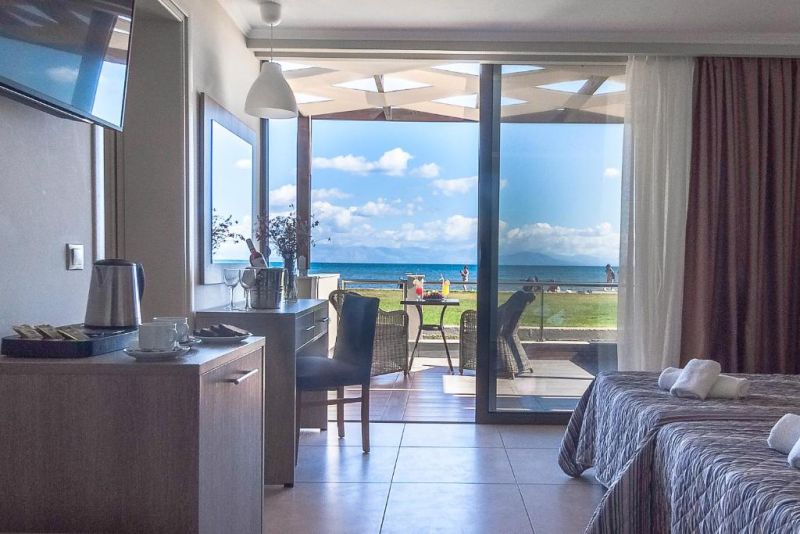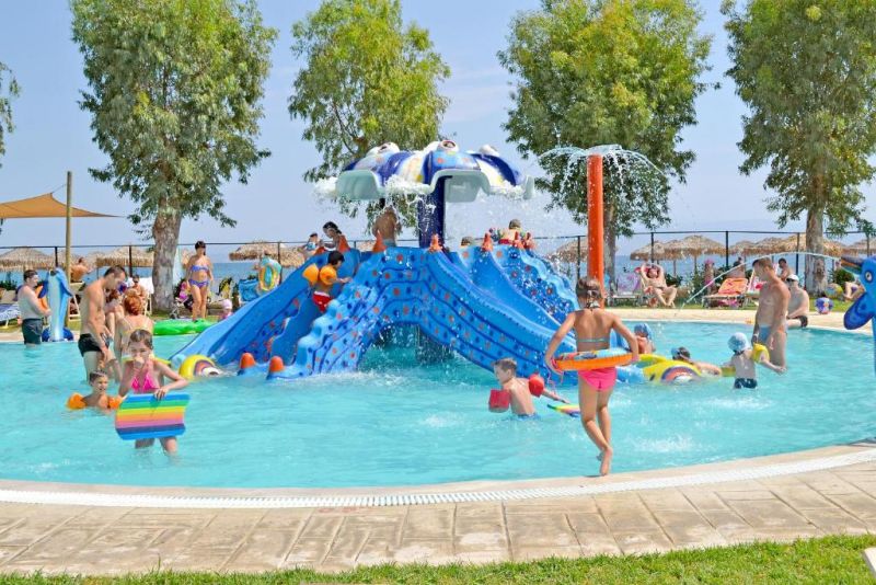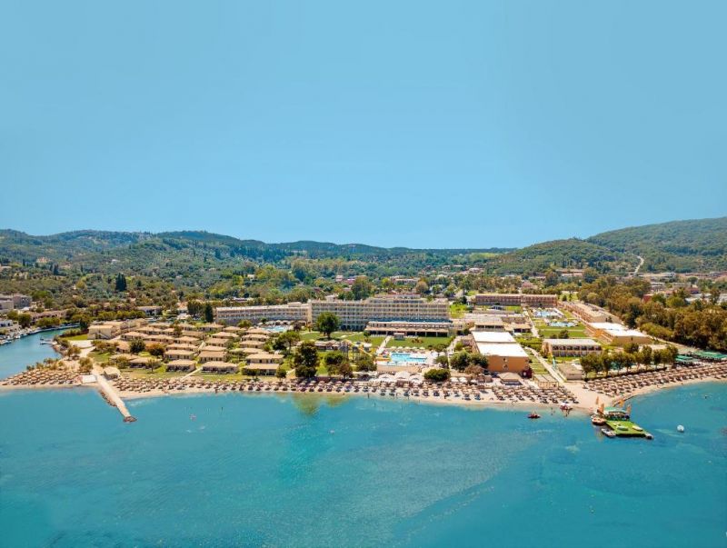 На берегу моря, в 300 м от поселка Мораитика, в 21 км от аэропорта г. Корфу.