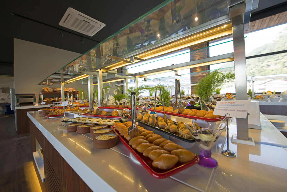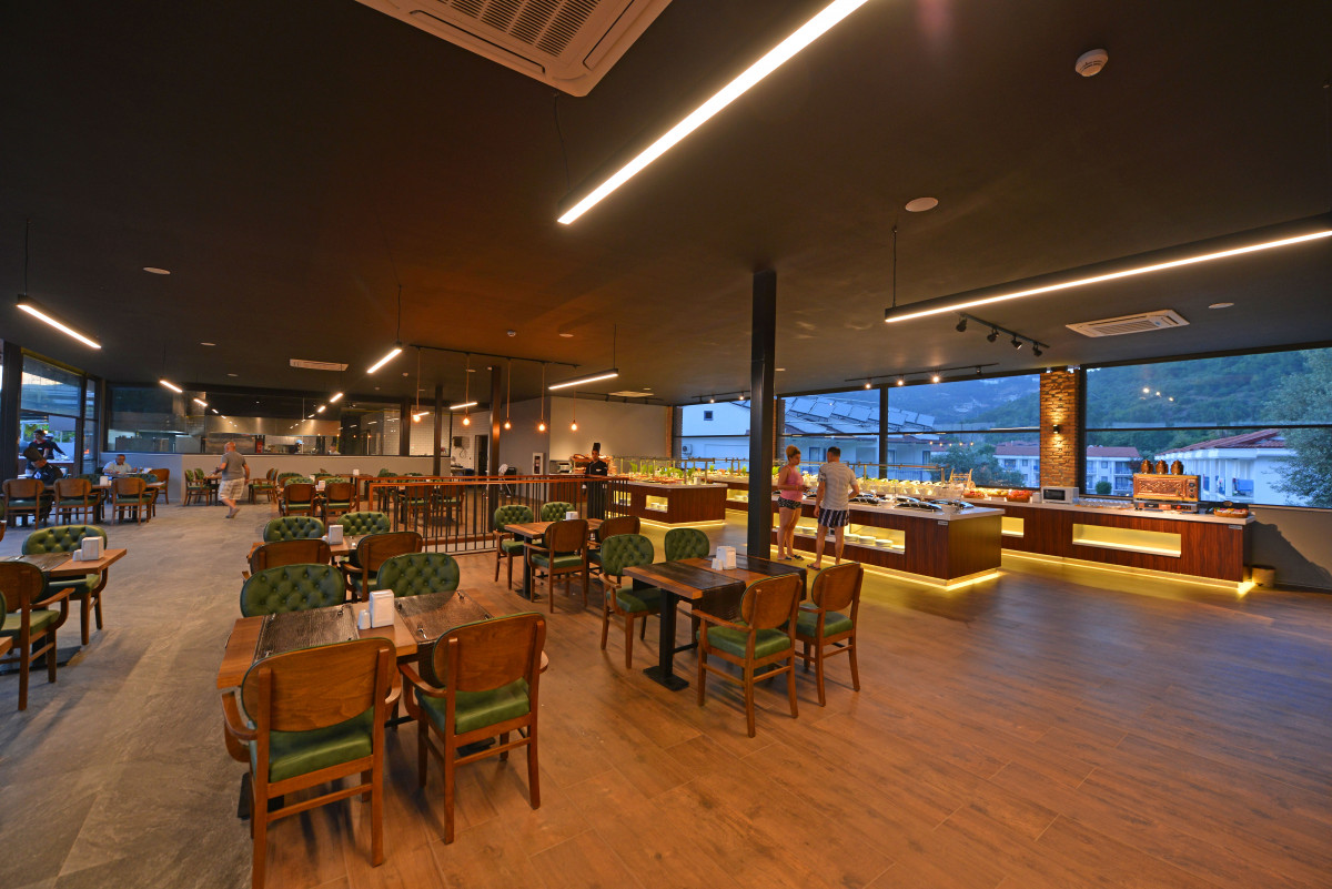 Отдыхали с подругой в этом отеле в октябре 2022г. Попали как раз на фестиваль параглайдинга, очень впечатляющее зрелище. Что касается самого отеля, то он скорее для людей, отдыхающих без детей. Может это нам так повезло, но детей в отеле не было совсем. За 10 дней нашего пребывания в этом отеле, было пару каких-то выступлений и всё... Т.е. анимации или каких-то дискотек не было совсем! Зато грохот из соседнего отеля аккурат до 23:00. Мы жили в корпусе, расположенном рядом с ресепшен, а вот те, кто жили в корпусах напротив (т.е. ещё ближе к соседнему отелю), наверное, вешались от этого грохота. Wi-fi у нас был и в номере и на балконе, скорее всего тоже из-за близкого расположения к ресепшену. Также Wi-Fi есть в баре у бассейна и в ресторане, там вообще бесперебойный. На ресепшен была девочка, которая неплохо говорит по-русски и по-английски, поэтому проблем с коммуникацией у нас не было. Номер очень понравился. Уборка и смена постельного белья и полотенец ежедневная, все необходимые туалетные принадлежности в наличии и при необходимости пополняются. Кондиционером мы не пользовались, т.к. был октябрь, т.е. погода была просто отличная, но в номере жарко не было. В бассейне почти не плавали, т.к. уже водичка в нём была достаточно прохладная. Полотенца для пляжа выдаются без проблем и бесплатно. Территория отеля очень ухоженная и благоустроенная. В баре всегда работает кофе-машина, подходи и наливай сколько хочешь и какой хочешь кофе на выбор. Также возле бара с 14:00 до 16:00 выпекают вкусные лепёшки с сыром и зеленью (бесплатно). В баре с 14:00 до 16:00 дают мороженое, пиццу на заказ и всякую выпечку. Из алкоголя - местные сухие вина (красное, белое и розовое), пиво, наверное ещё и крепкий алкоголь, но мы его не употребляем, поэтому не скажу точно... На обед в ресторан мы за 10 дней ходили 2 раза и то, только чтобы посмотреть, что там дают именно на обед. Ходили только утром на завтрак и вечером на ужин, этого было более чем достаточно. Т.е. проголодаться не успевали. Вообще кормят достаточно вкусно и разнообразно! Из фруктов в октябре были только дыня, виноград, груши, яблоки, мандарины, апельсины. Много маслин и оливок, зелени и других турецких вкусняшек. Халва, 4 сорта лукума. Сладкой выпечки - море, но вкусных 2-3 варианта, остальные не зашли, но это на мой вкус...Сыры (правда, тоже не все подошли по вкусу, 1-2 сорта), а колбасы их мне вообще не нравятся в Турции. Свеже-выжатый сок - 40 лир. А в автомате, видимо, разведённый порошковый (апельсиновый, ананасовый и мультифруктовый). Больше всего в ресторане этого отеля лично меня впечатлила веранда со столиками, с которой потрясающий вид на море и гору. Вечером на гору бьют беглые световые лучи и проектируется турецкий флаг, очень красиво! Ребята (обслуживающий персонал ресторана) просто живчики, очень быстро убирают посуду с освободившихся столиков и протирают их. Очень приветливые и дружелюбные, и все - молодые красавчики! В отеле отдыхали англичане, немцы и русские, гостей из других стран в это время не было. Если кто-то хочет тусы, то вам в другой отель. В этом достаточно спокойно. С детьми здесь, по-моему, тоже будет скучно. Хотя, возможно, летом и повеселее, не так, как осенью. Но нам было очень комфортно без всей этой движухи. Планирую ехать снова в этот же отель обязательно и снова осенью! Мне очень понравилось!!!
