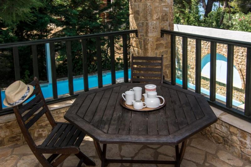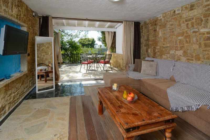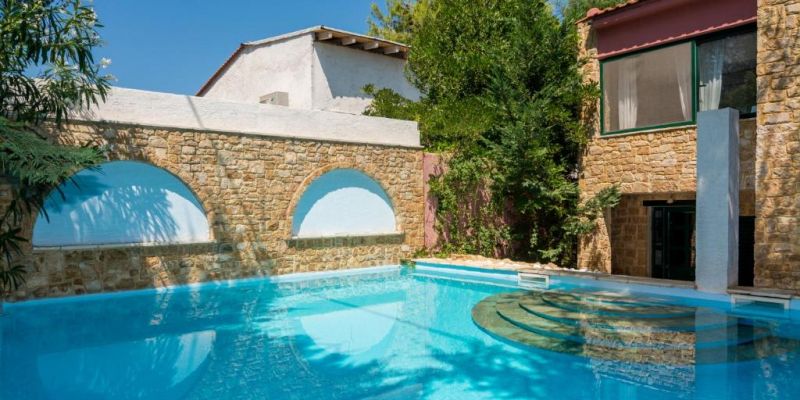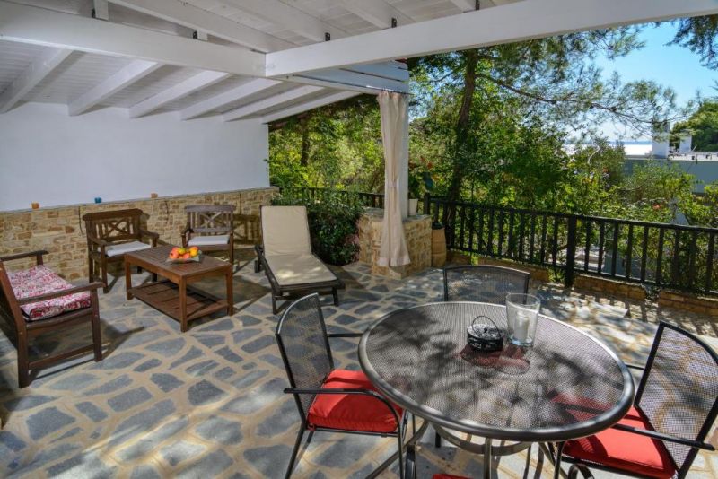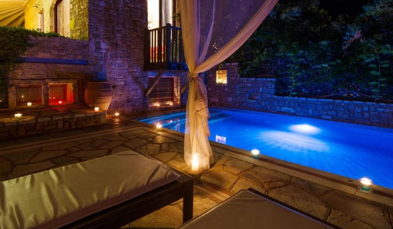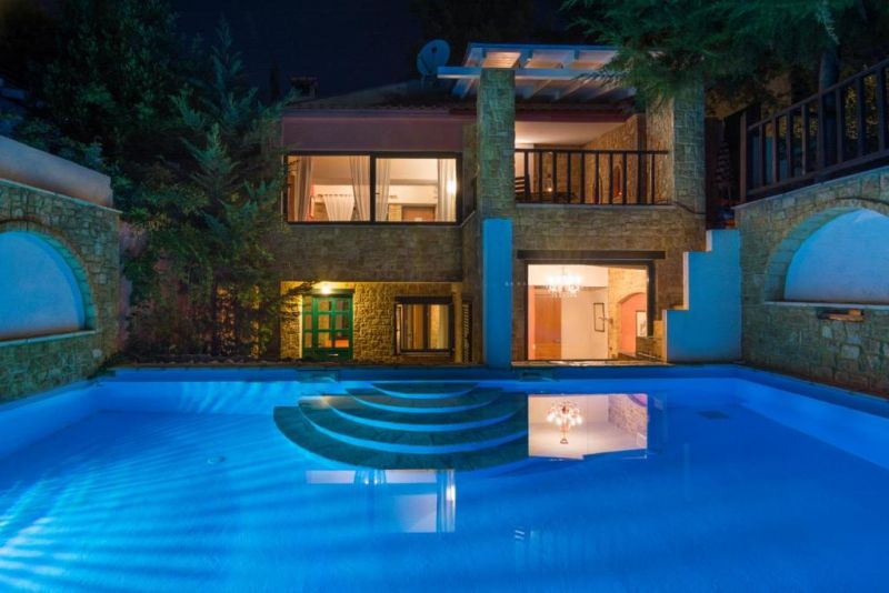 Villa Nefeli (185 кв.м, построена из камня, вид на море, индивидуальный бассейн. 2 салона, каменный камин, 3 спальни + дополнительная спальня в мансарде, полностью оборудованная кухня, 2 ванных комнаты и WC, отдельный бассейн (80 кв.м.), пульт управления внешними воротами, паркинг на 2 машины. Возможное размещение - до 6 человек)