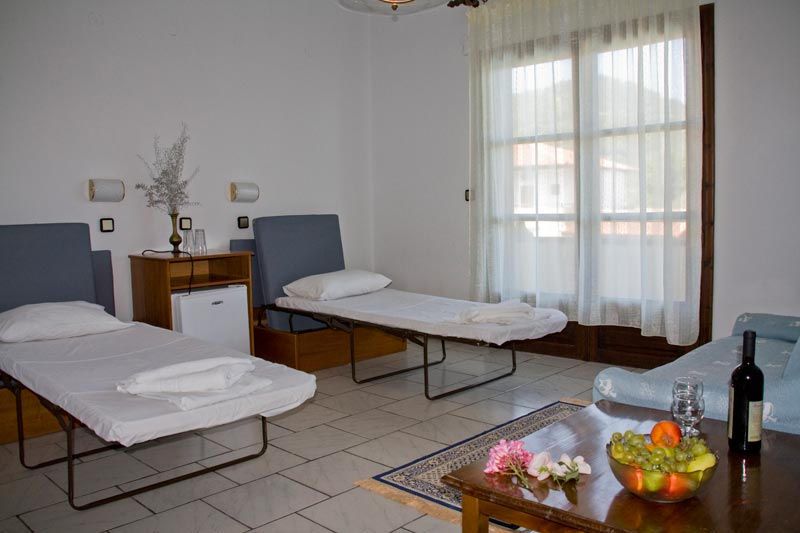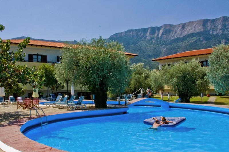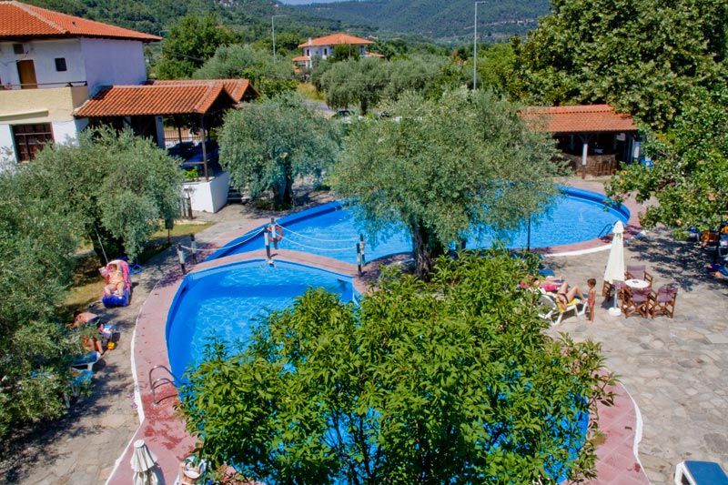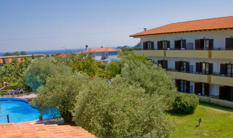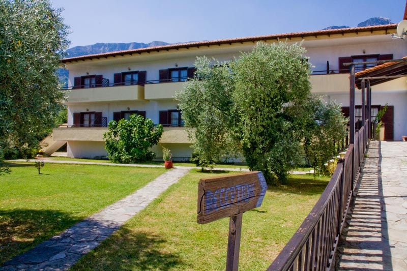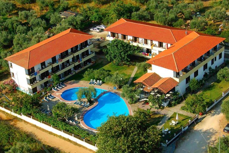 Курортное местечко Скала Потамьяс, в 31 км от порта Прину, в 157 км от аэропорта «Македония» г. Салоники, в 24 км от аэропорта «Мегас Александрос» г. Кавала. 3 трехэтажных здания. Обновлен в 2012 году.
