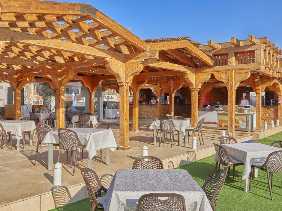 Доброго дня! Отдыхали в этом отеле с 27 марта по 4 апреля 2026 года. В отеле ярко выражена сезонность, и мы попали как раз на границу несезона и сезона. В первый день все как в отрицательных отзывах - в обед нечего есть в ресторане (даже рис отвратительно приготовлен – сильно переварен, весь комками), пересушенное мясо, вялая анимация. Ужин был чуть повеселее. На следующий день кухня порадовала увеличившимся выбором блюд и качеством приготовления. Вечером давали осьминогов и кальмаров. Далее в течение отдыха претензий к кухне почти не было, присутствовало разнообразие. В Египте неважно готовят птицу (что курицу, что индейку) – нередко пересушивают. В такие дни спасает люля-кебаб (говядина) на гриле. Много египетских блюд с непонятным для нас вкусом. Из фруктов была вкусная, хоть и зеленая, дыня. Но была не всегда и часто выносилась 1 раз в начале обеда или ужина. Не пришел к началу мероприятия – в пролете. На третий день (29 марта) появилась аквааэробика в бассейне. 31 марта стали проводиться вечерние шоу (приглашенные танцоры, файершоу и т.п.). До этого вечером проводили дискотеки с отличным подбором песен (плэйлист явно был ориентирован на русских) или караоке. 1 апреля появились отдыхающие арабы. 2 апреля Мистер Тату (главный аниматор) стал проводить в 15.15 у бассейна занятия танцами (бочата, сальса и пр.) Мистер Тату - очень харизматичный египтянин, сам танцует великолепно, также хорошо ведет вечерние шоу. Остальные аниматоры никакие - я первый раз в жизни я замерзла на аквааэробике в подогреваемом бассейне. В целом отдых удался – отель хорошая 5* при условии, что вы едете в сезон. Красивая уютная компактная территория, отличные горки, 2 подогреваемых бассейна. Современные номера (немного ушатанные, но все работает), ежедневная уборка (не идеально, но пойдет). Вам принесут халаты и тапочки, будут пополнять шампуни и гель для душа. Про еду и анимацию уже писала – в сезон все норм. Удачное месторасположение – вечером можно гулять по Наама Бэй или по променаду вдоль моря до Гафи Ресорт. Для нас это важно, мы не любим 24/7 сидеть в отеле даже при наличии анимации. Возможно отель не подойдет для туристов с маленькими детьми или пожилым людям, т.к. дорога до пляжа включает в себя спуск, соответственно обратно подъем. Нас это не напрягало. Возможны отдельные инциденты с персоналом, в Египте часто выделяют европейцев. В отеле сервис на уровне, но в любом стаде есть паршивая овца. Такие инциденты очень хорошо решать с девушкой египтянкой, сидящей рядом с ресепшн, к сожалению, не помню её имя. Когда сотрудники отеля стали закрывать бассейны в 16.30 вместо 17.00 обратилась к ней – вопрос был решен. Инцидент в ресторане мы решали с администратором ресторана (молодой невысокий египтянин), всегда стоит на входе в ресторан. И все же ставлю 4 (не 5) – пляж и море оставляют желать лучшего. Оба пляжа маленькие, не рассчитаны на такое кол-во туристов. Заходишь на пляж – и попадаешь в к/ф «Любовь и голуби». Море, точнее те 2 крошечных участка, которые относятся к пляжам, оба узкие (по ширине пляжей) и короткие. Буквально метров 15, только стало по грудь и уже буйки - взрослому не поплавать. Много места в море занимает мертвый коралл – выглядит просто как серый камень, вокруг него немного рыбок. Такое может впечатлить ну только если вы в Египте в 1 раз. Мы как-то гуляли по пляжам в сторону Нов