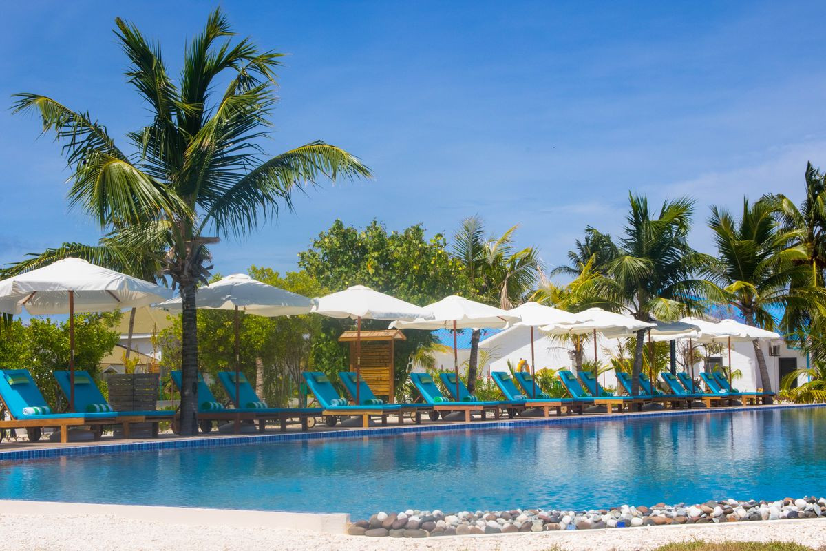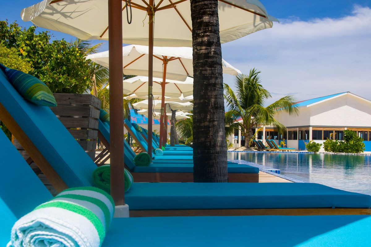 Отдыхали с ребенком, заход в море со стороны бунгал плохой караллы, мелко очень. Утром когда прилив еще терпимо и поднимается вода прям к бунгало где песочек но вечером одни камни и водоросли. Питание хорошее, есть выбор. остров вытянутый и ходить по жаре до ресторана для меня было пыткой, машинки ездить но их надо караулить ждать. Для релакса мне не очень. Дорога, отдельная история, пересадки, ожидание, жара с ребенком сложно. Лучше переплотить и выбрать остров поближе к аэропорту и время и нервы сэкономите. Для двоих молодых норм наверно.
