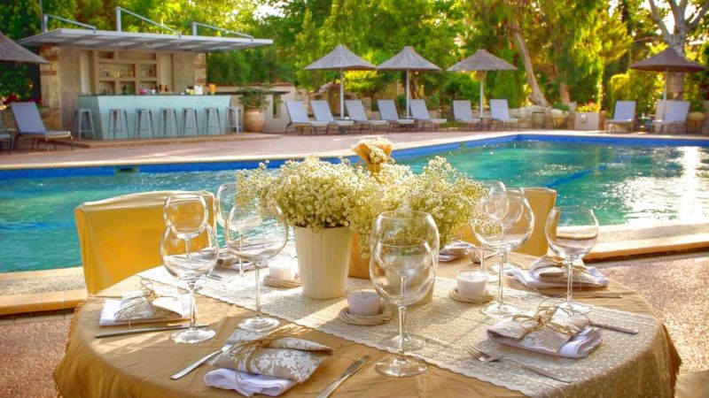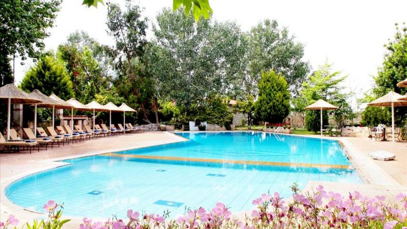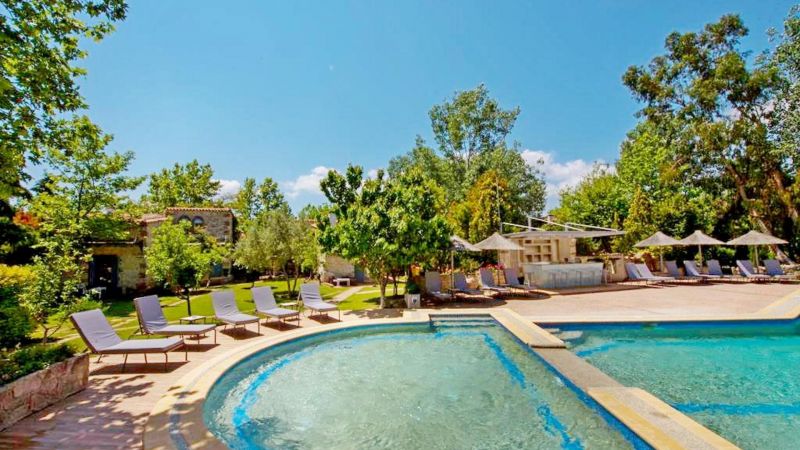 Maisonette Superior Private Pool (~45 кв.м, это двухуровневый номер. На нижнем этаже гостиная с камином и диван-кроватью, на втором этаже спальня (без двери). В номере CD/DVD-плейер, частный бассейн, частный сад с лежаками, сейф, кофе-машина Espresso, ванна, халаты и тапочки, обслуживание в номере (завтрак в номер). По прибытии: бутылка вина и фрукты в номер)