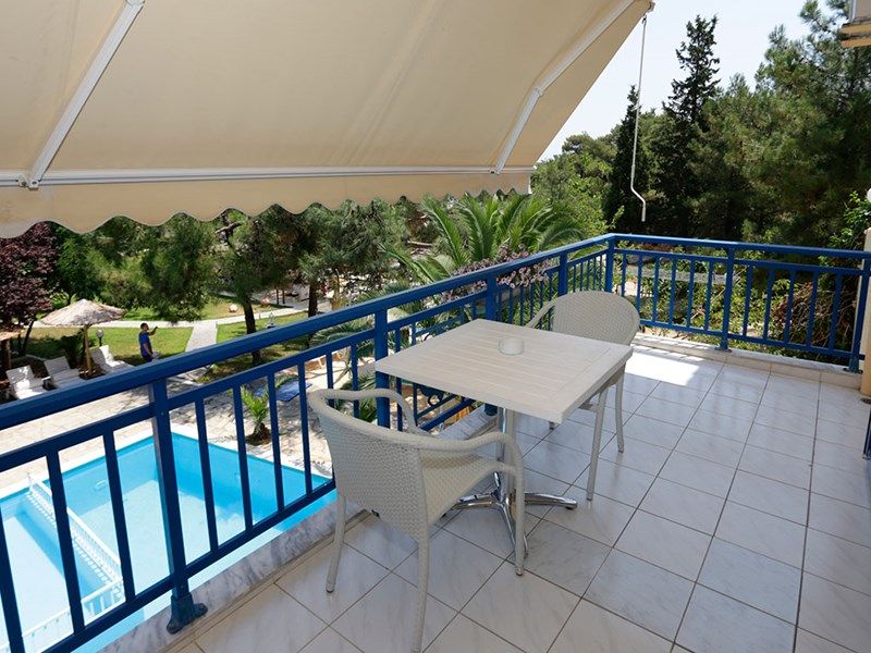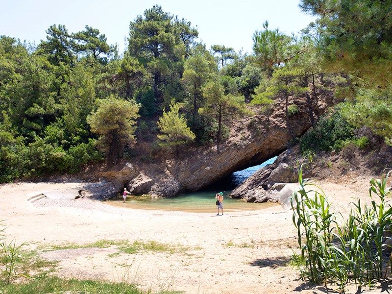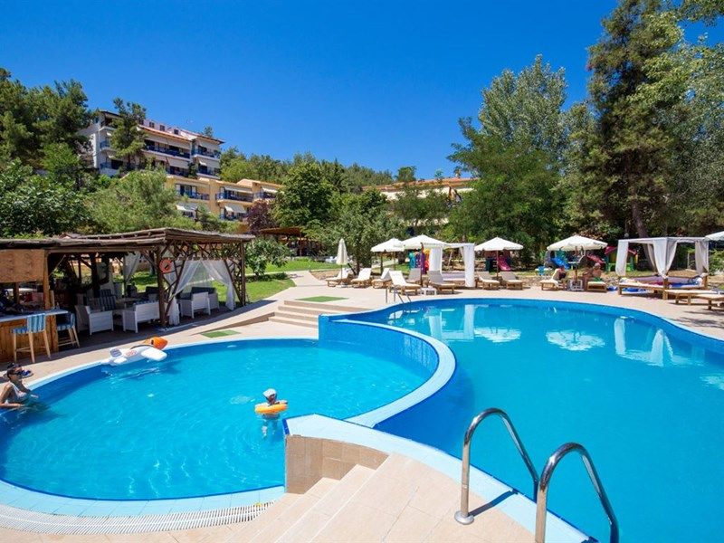Расположен в районе Трипити, на берегу живописного залива, в 3 км от поселка Лименарья, в 40 км от порта Лименас, в 20 км от порта Прину острова Тасос. Состоит из четырех трехэтажных зданий.