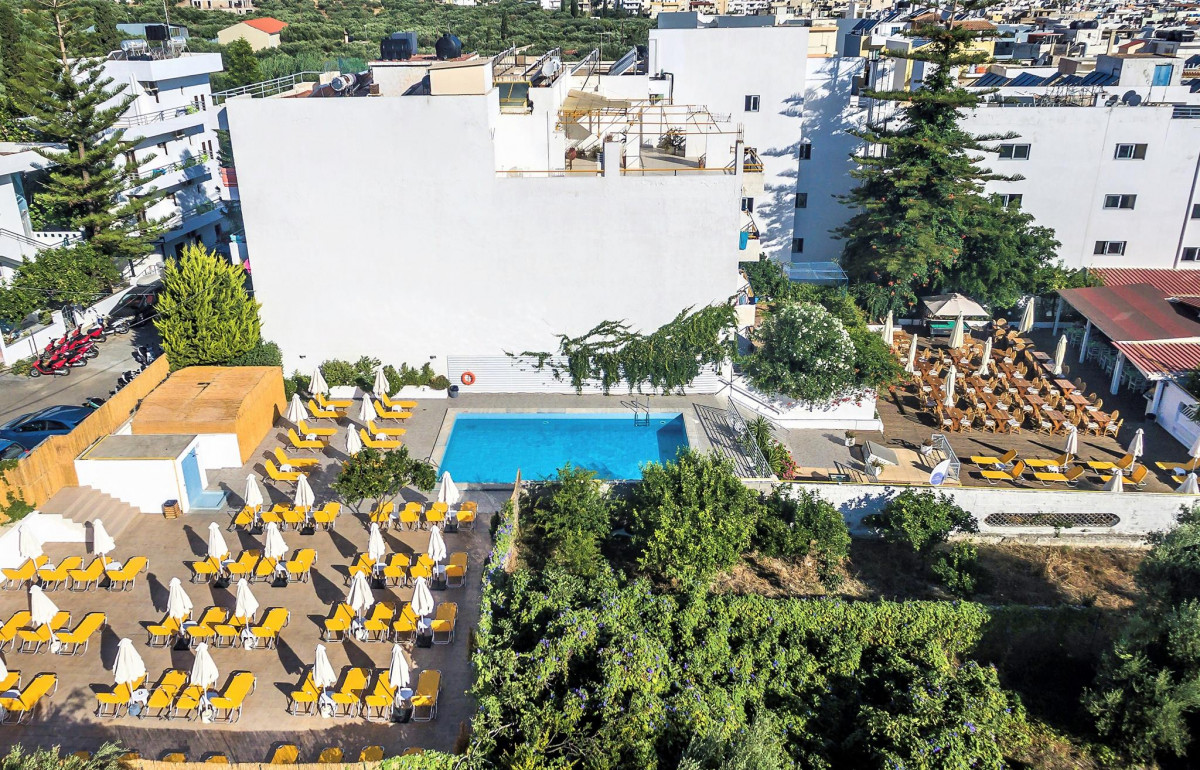 В 24 км от аэропорта г. Ираклион, в центре г. Херсониссос, в 150 м от городского пляжа. Автобусная остановка рядом с отелем.