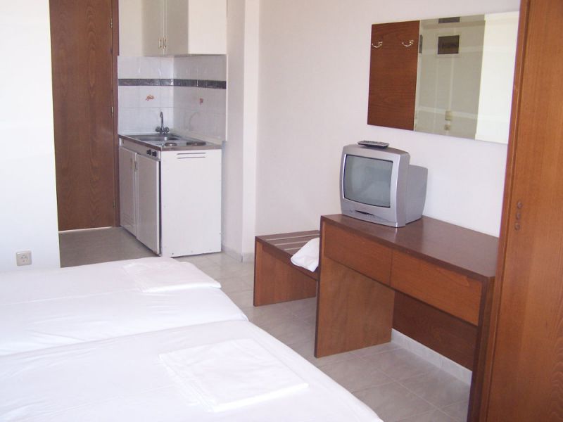 Услуги в номере / удобства: кондиционер (индивидуальный, за дополнительную плату), ванная комната (душ), спутниковое ТВ (1 русский канал), мини-холодильник только в Studios, балкон.