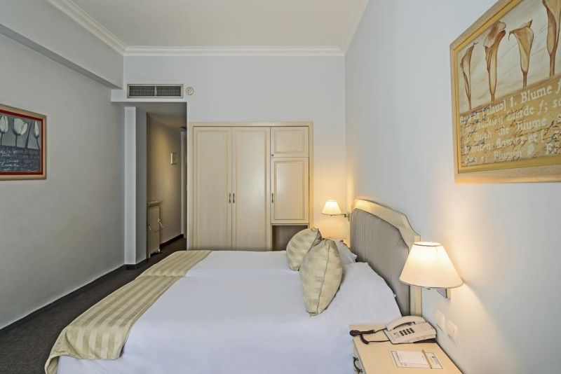 Услуги: The hotel was built in 1972 and renovated in 2003. It consists of 6 storeys and a total of 82 rooms, of which 10 are singles, 61 are doubles and 11 are suites. It offers guests a lobby with a 24-hour reception, a safe, a currency exchange desk and a lift. In addition, there is a cafe, an air-conditioned gourmet restaurant with a separate non-smoking area, 5 conference rooms, business centre, free of charge wireless Internet, a gym and a sauna. Room service, a wake up call service, laundry service as well as medical assistance are also available.