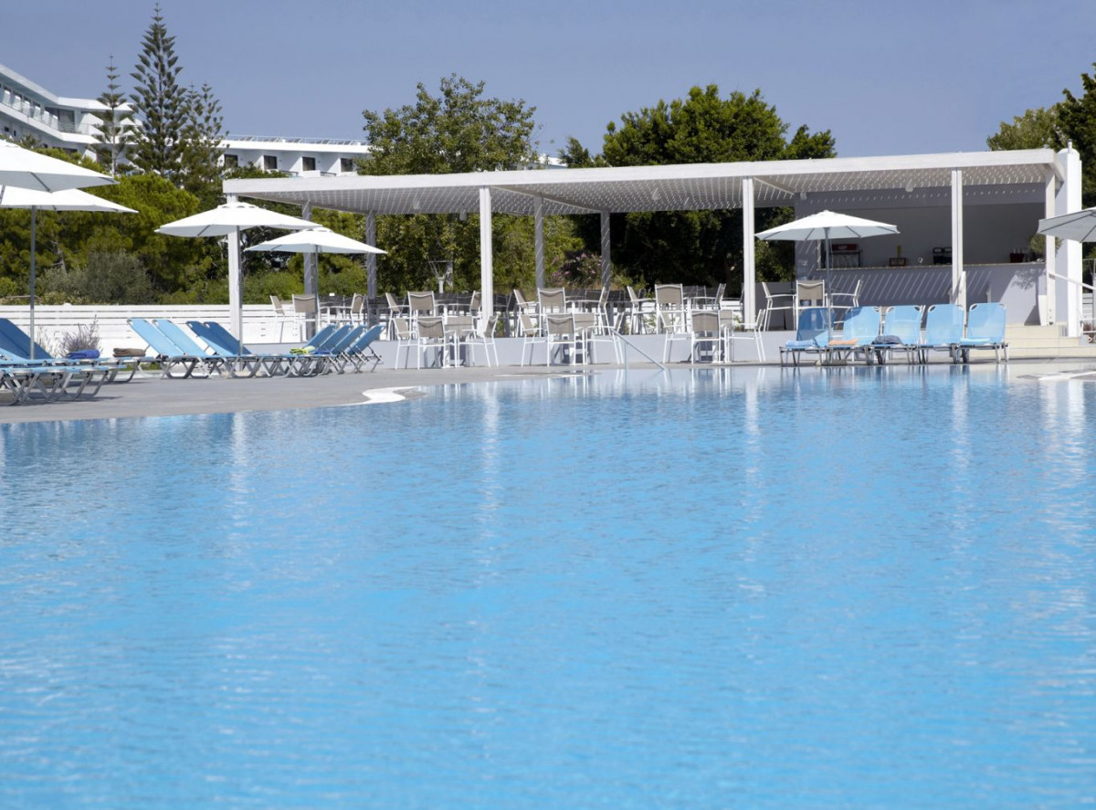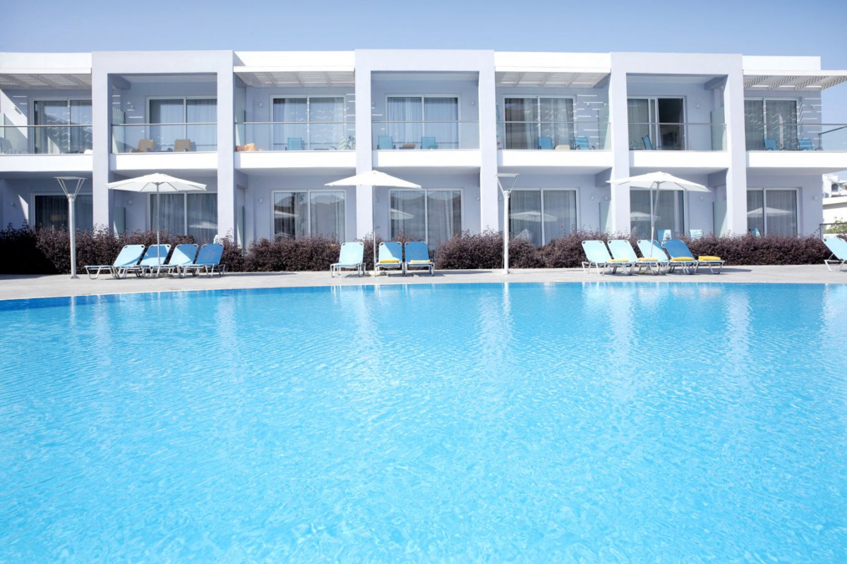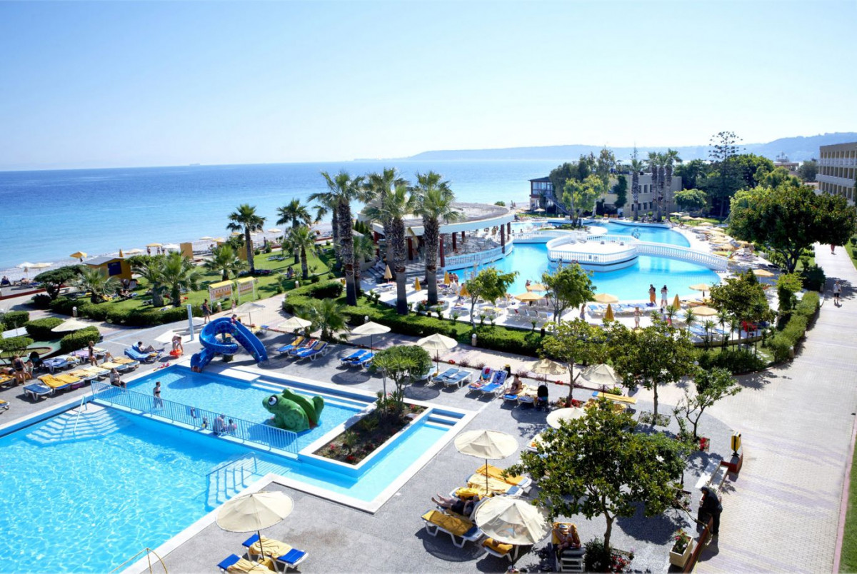 В районе Ялиссос, в 7 км от г. Родос и в 8 км от аэропорта, на берегу моря.