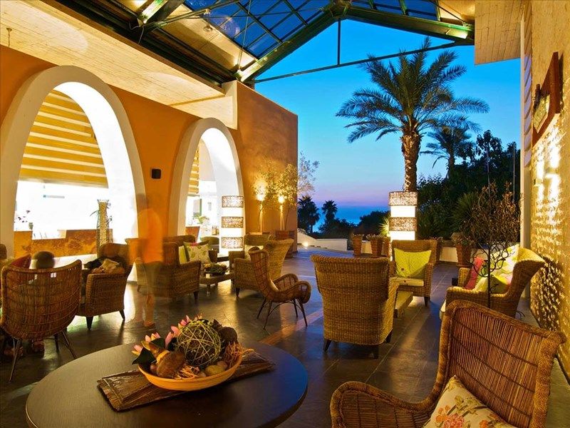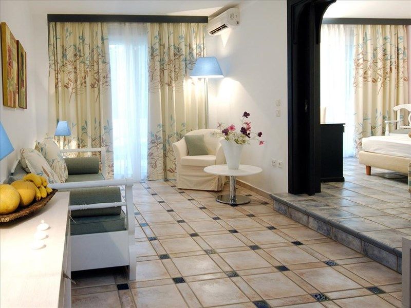 Великолепные номера и просторные сюиты совмещают в себе изящество и экзотический стиль. Чудесный вид на море дополняют сады с тропической растительностью и бассейн-озеро с впечатляющими водопадами. Интерьеры выполнены в оригинальном стиле: мраморные полы, открытые веранды и высокие атриумы. Пруд с рыбками Кои. Неслучайно отель был удостоен многочисленных международных наград как один из лучших греческих отелей, таких как «Золотая корона», награда от читателей журнала Conde Nast Traveler, Gold Medal Award, присуждаемый TUI. Отличный выбор для роскошного отдыха.