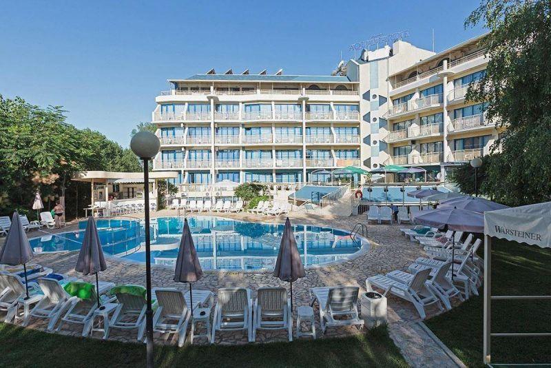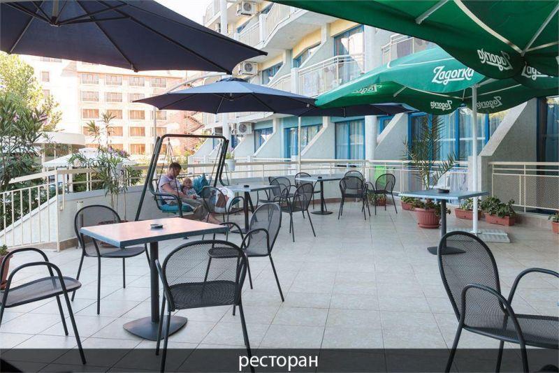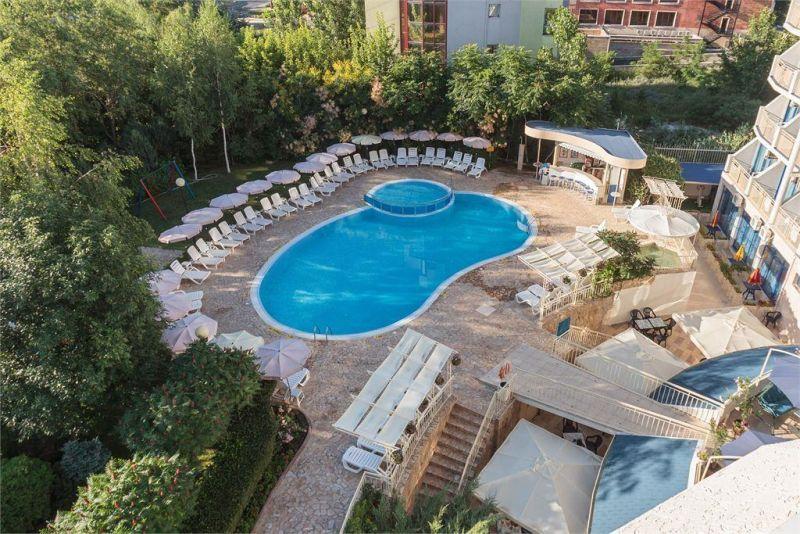в курортном комплексе Солнечный Берег, в 25 км от аэропорта города Бургас, в 90 км от города Варна, в 900 м от центра курорта и в 300 м от пляжа.