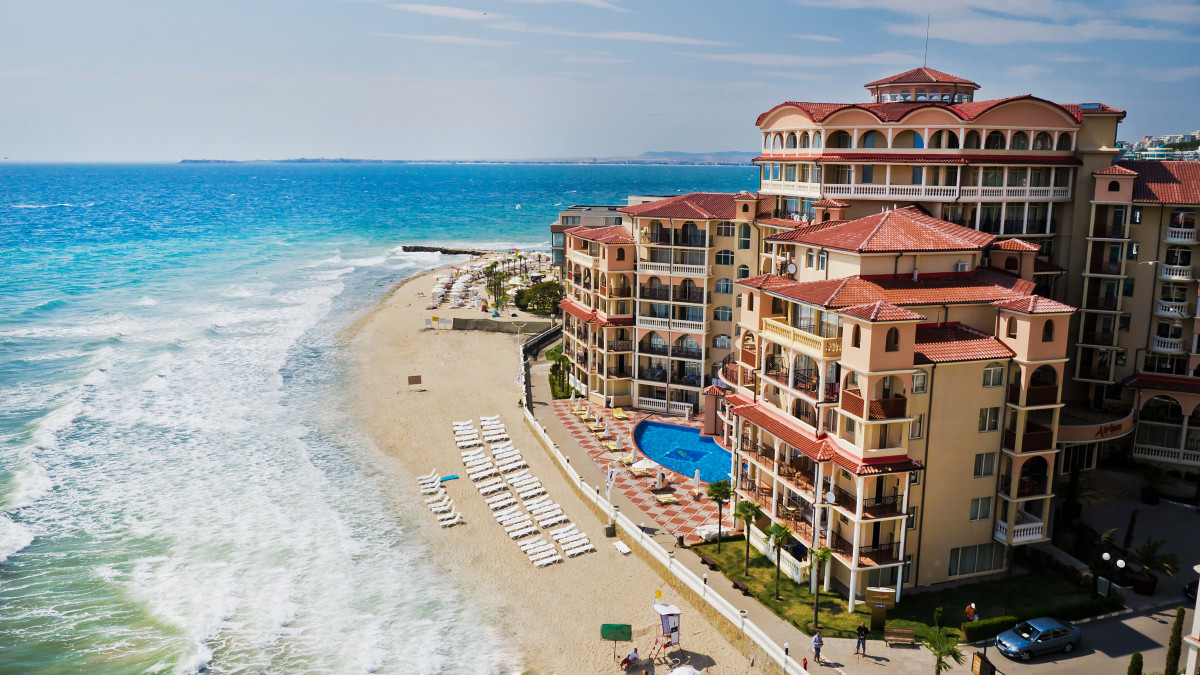 В курортном комплексе Елените, в 36 км от аэропорта города Бургас, в 9 км от курорта Солнечный Берег, на самом берегу моря.