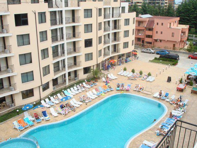 В курортном комплексе Солнечный Берег, в 30 км от аэропорта города Бургас, в 800 м от центра курорта и в 350 м от пляжа.