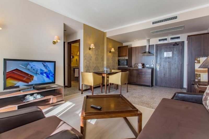 Комплекс состоит из главного здания с ресепшен и основной инфраструктурой, а также нескольких апарт-корпусов (только номера; у каждого корпуса отдельный вход).