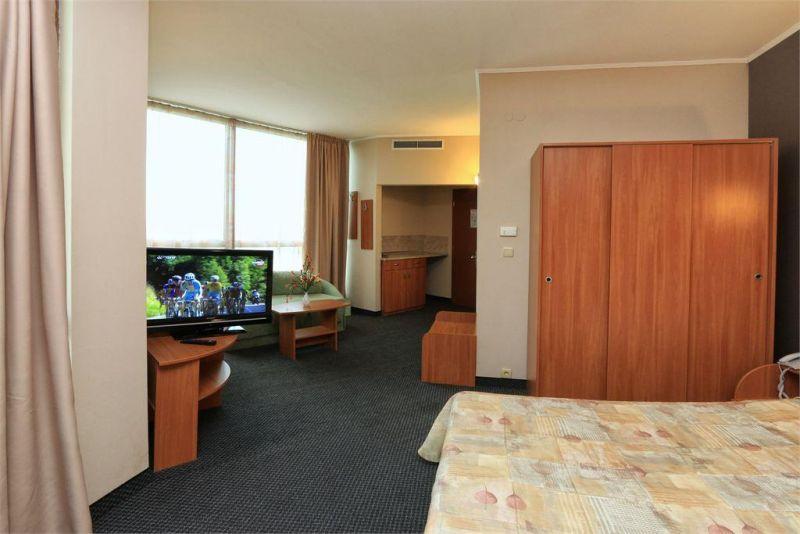 В курорте Золотые Пески, в 25 км от аэропорта города Варна, в 300 м от пляжа, в 900 м от центра курорта.