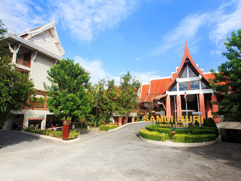 На северном побережье острова Самуи, на пляже Менам, в 15 км от аэропорта Самуи, в 10 км от центра города, на берегу моря.