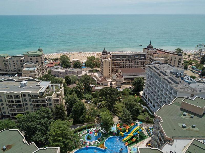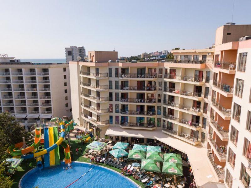 в курортном комплексе Золотые пески, в 30 км от аэропорта города Варна, в центрe курорта и в 150 м от пляжа.