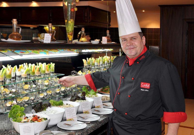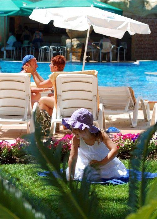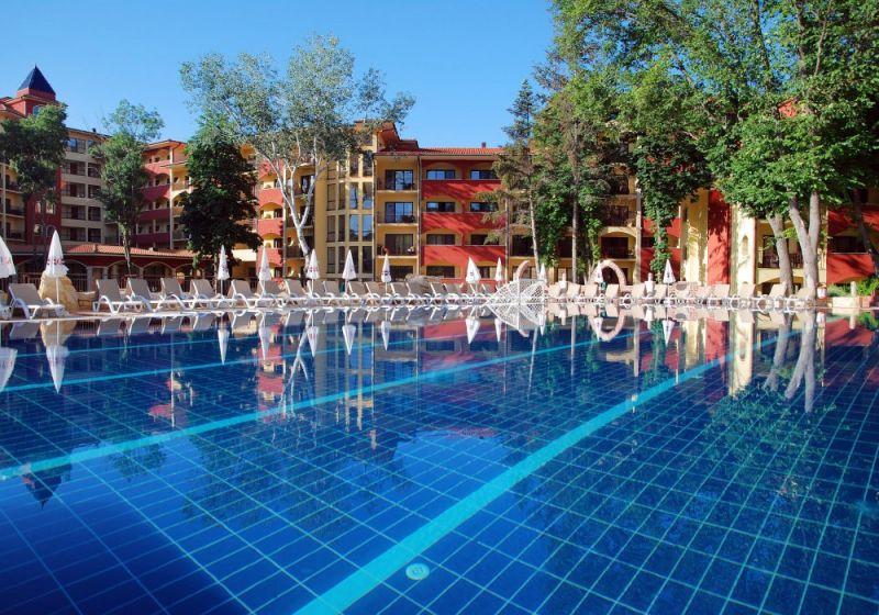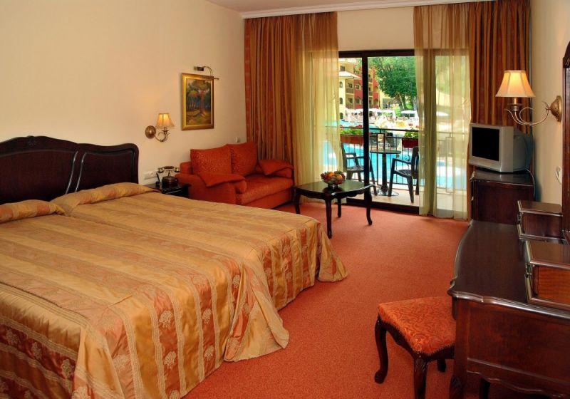 в курортном комплексе Золотые Пески, в 30 км от аэропорта города Варна, в 500 м от центра курорта и в 50 м от пляжа.