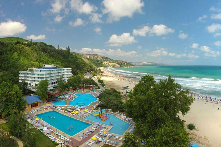 Отель расположен непосредственно на пляже, в 300 м от центра Албены, в 40 км от аэропорта г. Варна