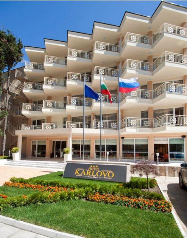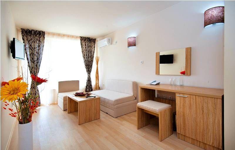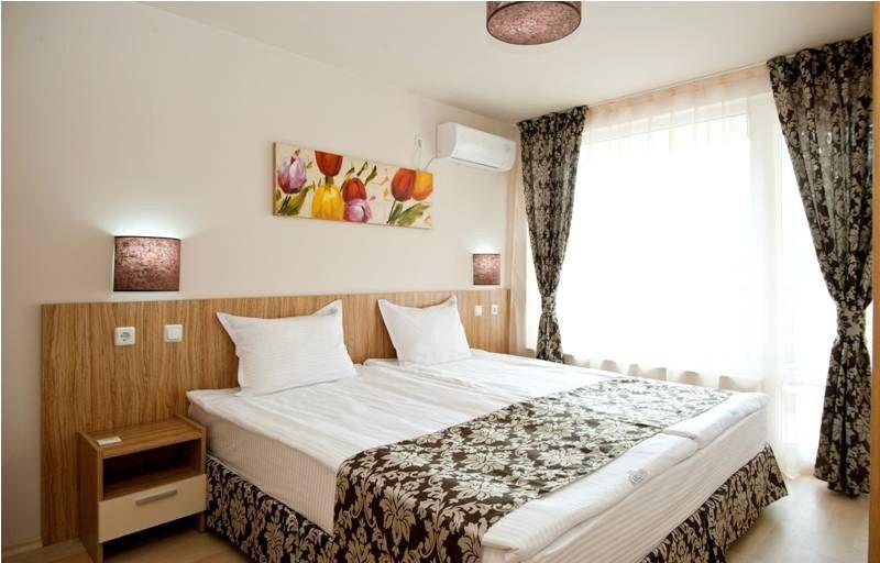 в курортном комплексе Солнечный Берег, в 20 км от аэропорта города Бургас, в 500 м от центра курорта и в 200 м от пляжа.