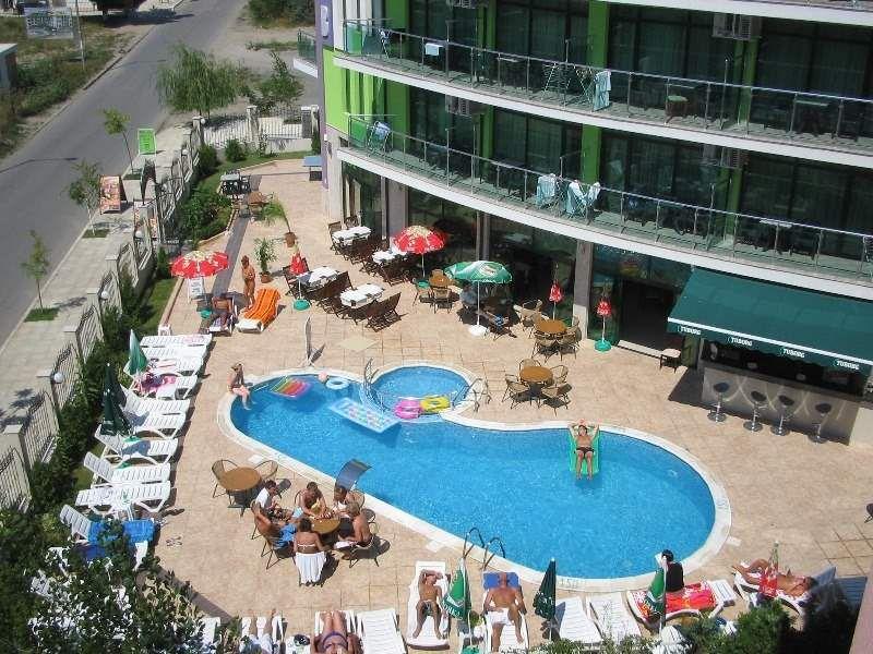 35 км от аэропорта г. Бургас, на курорте Солнечный Берег, расстояние до центра курорта 200 м