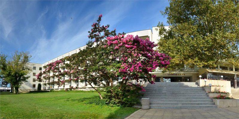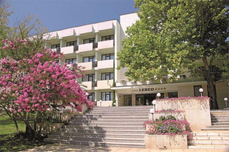 Отель находится на второй береговой линии, в 500 м от центра курорта. Отель входит в комплекс отелей Grand Hotel Varna, инфраструктура которого доступна и для гостей отеля Lebed. Расстояние до аэропорта Варны — около 20 км.