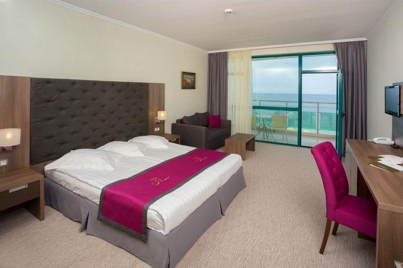 в курортном комплексе Золотые Пески, в 30 км от аэропорта города Варна, в 200 м от центра курорта и в 30 м от пляжа.