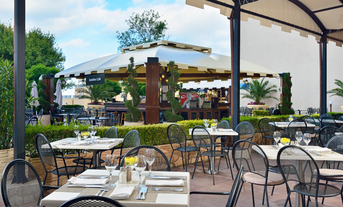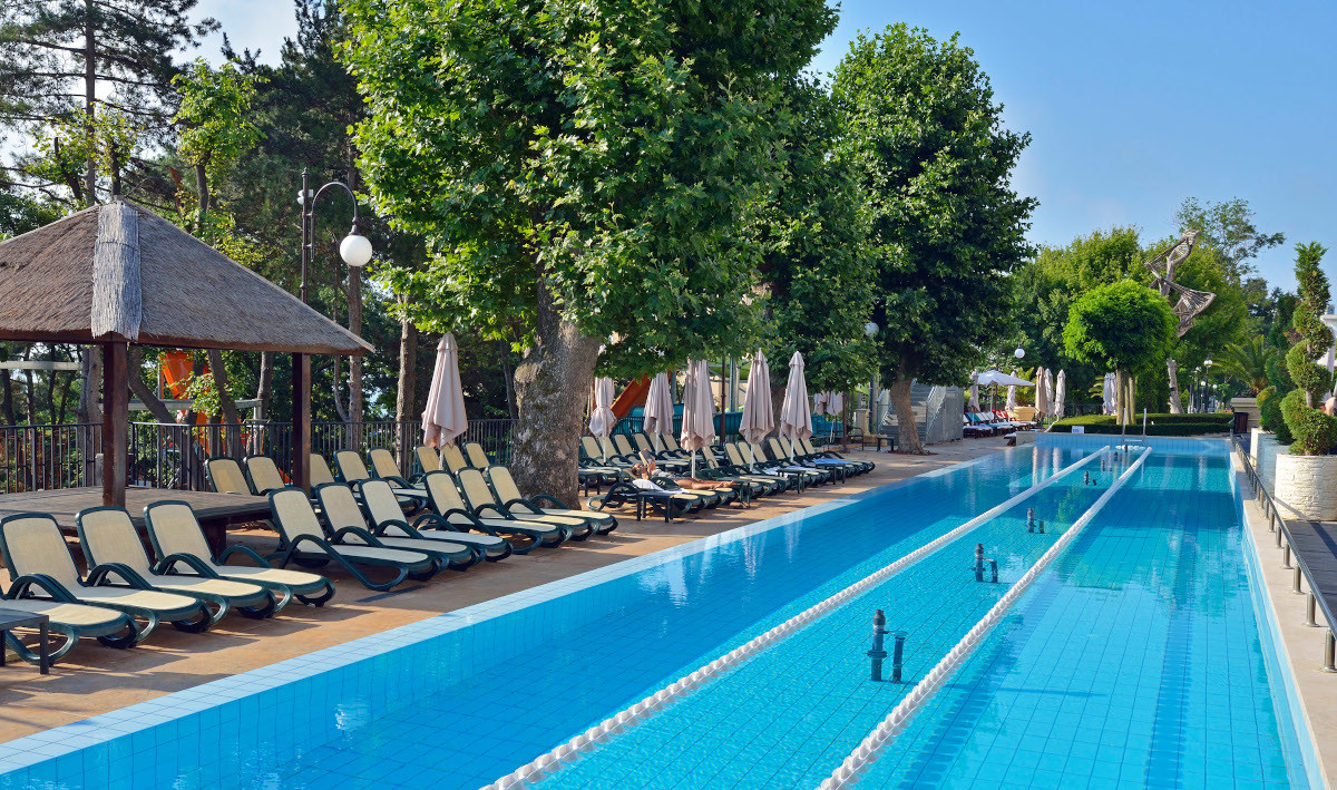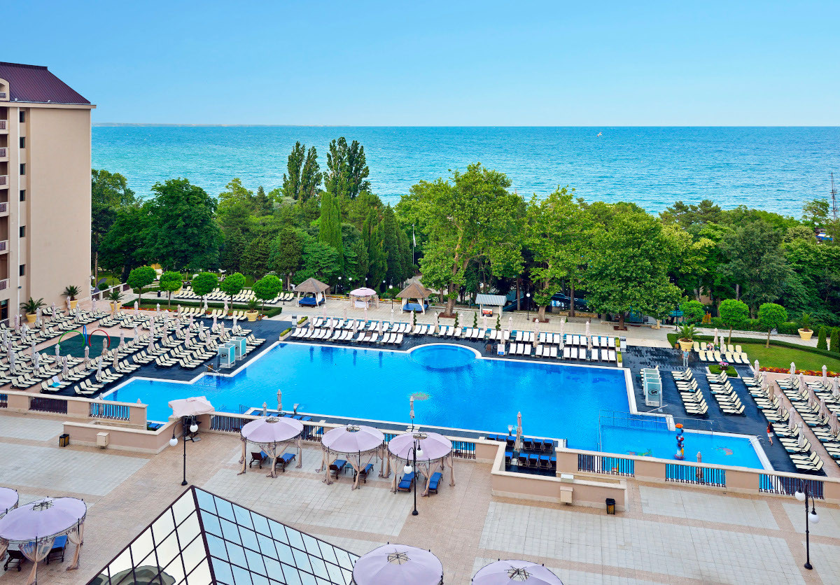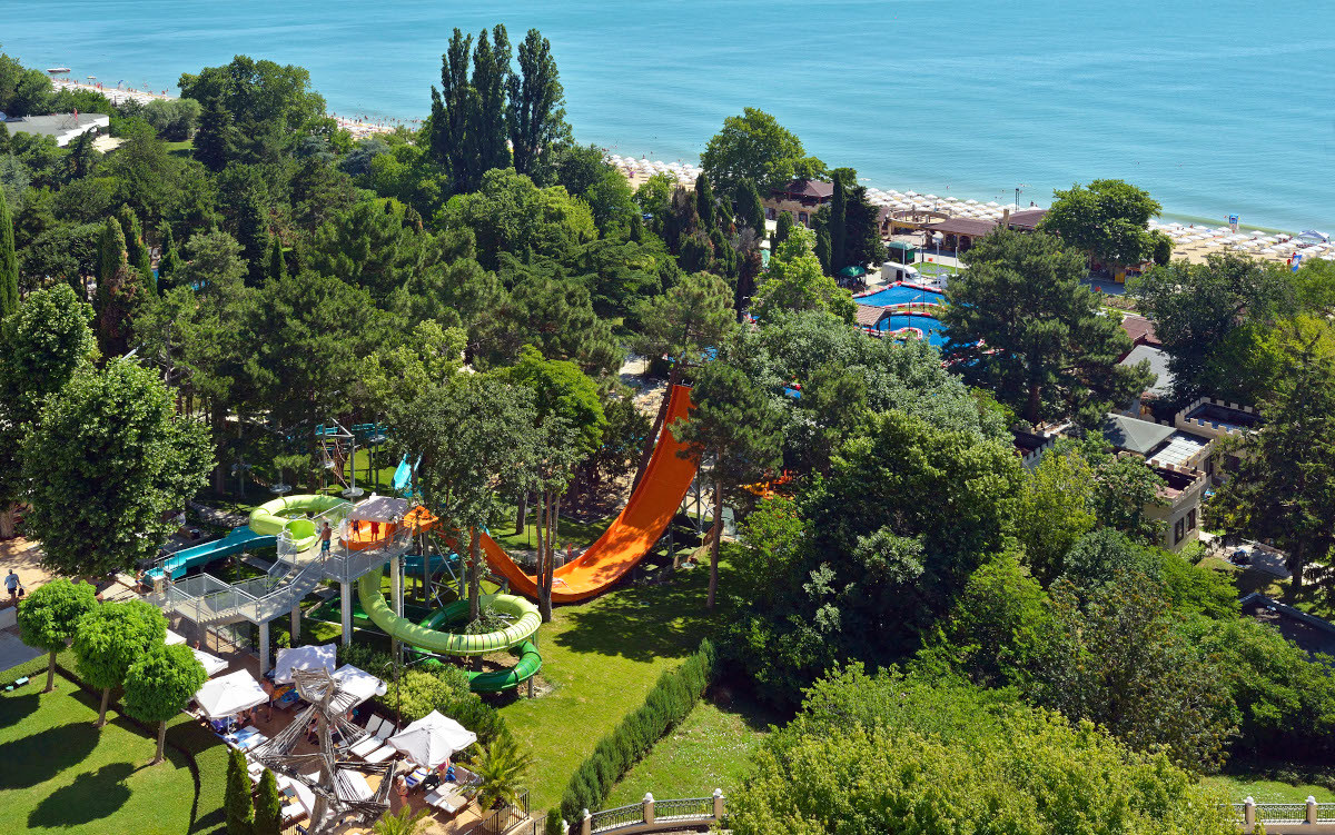 в курортном комплексе Золотые Пески, в 30 км от аэропорта города Варна, в 200 м от центра курорта и в 100 м от пляжа.