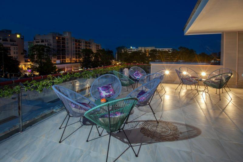 В центре курорта Солнечный Берег, в 30 км от аэропорта города Бургас, в 180 м от пляжа.