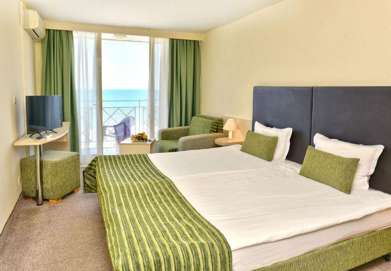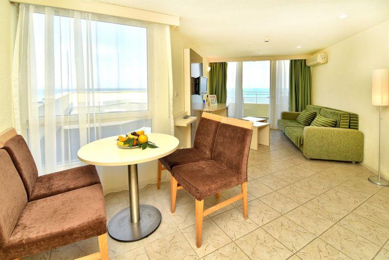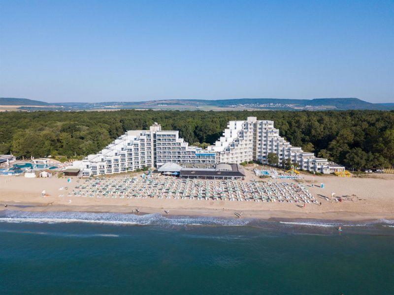 На берегу, в 40 км от аэропорта города Варна, в 900 м от центра курорта, в 0 м от пляжа.