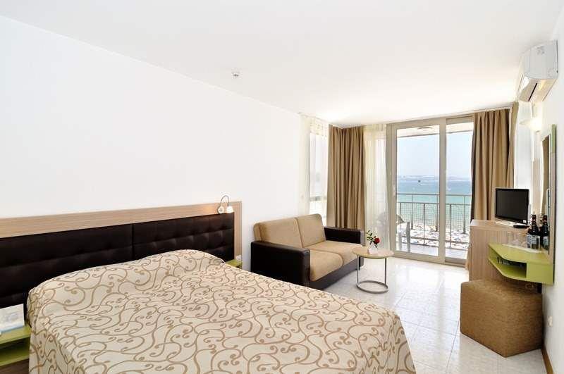 Номера с видом на море:(около 15 кв. м) - уютные и комфортные с панорамным видом на море. Большая часть номеров оборудованы двумя стандартными одноместными кроватями и раскладным диваном или одной двуспальной кроватью и одной одноместной. Часть номеров со смежной дверью и двухярусными кроватями. Максимальное размещение: 3 взрослых и 1 ребенок или 2 взрослых и 2 детей.