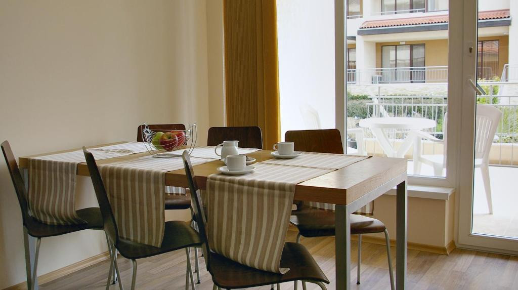 Проживали в отеле с 12 по 19 июля с 2 детьми (2 и 13 лет). проживали корпусе F с видом на бассейн и боковым на море в 2-спал.апартаментах. Далековато от рецепции и ресторанов, но зато очень спокойно. Номером осталась очень довольна: 3 комнаты, прихожая, 2 санузла, один с душевой кабиной (фен имеют оба), 2 балкона, большой балкон с входами из обеих спален. Балконы укомплектованы пластиковой мебелью и сушилками. В спальнях - одна большая и 2 сдвинутые кровати, шкафы, туалетные столики, в шкафу сейф и пылесос. Кухня-гостинная примерно 30 м2 с раскладным диваном и телевизором. Кухня полностью оборудована для приготовления (холодильник, эл.плита на 4 конфорки, духовка, микроволновка, эл.чайник, 2 тостер, капельная кофеварка) с обеденным столом и 6 стульями. Большое количество посуды: 3 кастрюли и 2 сковородки, по 6 тарелок разного вида, кружек, бокалов и рюмок, набор ножей, штопор-открывашка, 2 разделочные доски, терка. Если заезжать на долго, не хватает только стиральной и посудомоечной машин. Видела, стиралку в одном номере, значит есть и такие. Кондиционеры во всех комнатах. правда в одной не охлаждал, но они особо и не пригодились, т.к. в номере ночью прохладно, а днем в нем особо не сидишь. Корпусов в отеле 7, все стоят у кромки пляжа. Пляж огромный, песчаный, достаточно чистый как и море. Вход в море мелкий, на буйках по шейку среднестатистическому россиянину. Шезлонги на пляже платные, но можно приходить со своим зонтом-лежаком-покрывалом. Мы лежали у бассейна, на море ходили по мере необходимости. Полотенец пляжных отель не выдает, из номеров выносить нельзя. Запасайтесь своими, но можно купить и на месте. В отеле неплохие магазинчики: продуктовый и сувениров (здесь можно приобрести полотенца, надувные матрасы, круги, жилеты, маски-трубки, раскраски игрушки и тд) Между корпусами отеля бассейны, различных размеров и конфигураций, 2 детские площадки и мини-гольф (платный), 2 бара. WI-FI бесплатный, работает на территории отеля, бассейнов везде. В отеле я видела 2 работающих ресторана: один в отдельно стоящем здании, в самом начале отеля - там мы завтракали, второй в том корпусе где рецепция. Завтраки - типичный шведский стол за исключением оладьев и блинов. Обедали мы в номере, а ужинать ездили в город. Каждые полчаса (в обед есть пеорерыв, не помню времени) из отеля в город ездит шатл, 1 лев с человека. Из города последний идет в 23.10, на входе в отель есть расписание. Ужин на нашу семью обычно выходил порядка 50 левов, без алкоголя. Порции здесь как правило большие, можно брать одну на двоих. Рекомендую прихватить с собой теплую одежду, тк несмотря на жаркие дни, вечером и ночью достаточно свежо (в ИЮЛЕ!!) Поэтому и бассейны гораздо холоднее чем море. В мини-клубе не ходили, аниматоров на территории не видела. Что касается города Обзор – небольшой курортный городок. По центр.улицам палатки с игрушками, сувенирами, одеждой. Покупать на мой взгляд особо не чего, обратите внимание на кожу, может повезет найдете что-нибудь приличное. В городе есть атракционы, где можно покатать и развлечь детишек. Курс на 06.2016 примерно 35 руб за 1 лев.