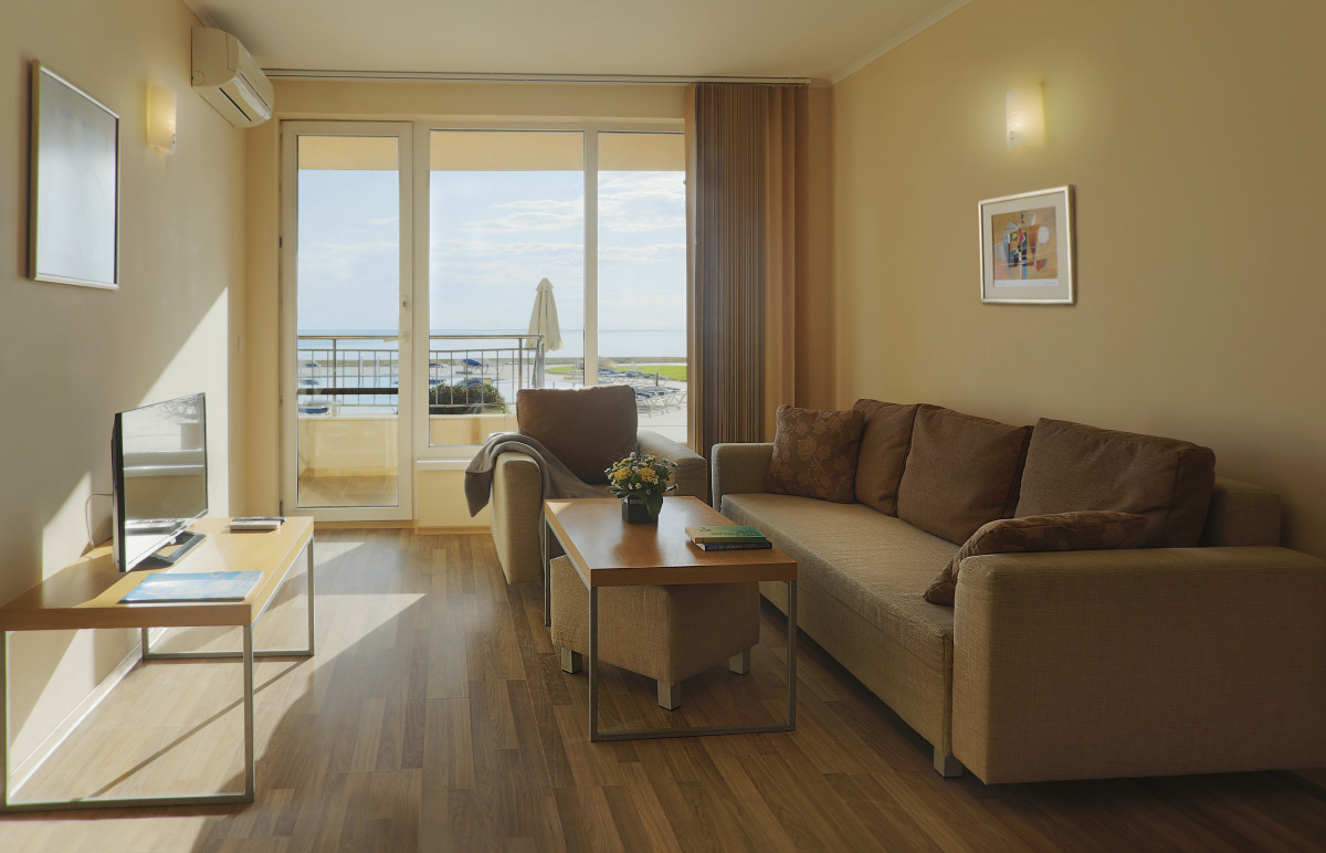 Мы отдыхали с 03.08.2019-15.08.2019 г. Погода и море были чудесными, на этом все прелести закончились. Убивает настроение бедности, которая вас окружает в отеле, безликие потёртые номера, серое застиранное постельное бельё со следами туши для ресниц. Печально. Питание добротное, но бюджетное и однообразное. В 23.00 закрывается ресторан и жизнь замирает, развлечений нет. Но в то же время администрация может позволить проведение ремонтных работ в ночное время. В нашем случае в соседнем номере до 01.30 проводили замену накопительного водонагревателя и мы не могли спать. Наши апартаменты не закрывались на замок, т.е в любое время электронным ключом можно открыть дверь... Утром, начиная с 06.00, проводится уборка территории, что-то двигается, подметается, а так как окна открыты, то все слышно и если вы любите поспать в отпуске до 10.00-11.00, то этот отель для вас не подойдёт. Отдельно про горячую воду. Нам не хватало горячей воды, чтобы принять душ и простирнуть купальник, домывались еле тёплой водой. Но добили меня сотрудники ресепшн, в частности администратор Реджина Тодорова. Мы планировали покинуть отель в 15.00. Администратор настойчиво и грубо требовала покинуть отель, что, согласно правилам отеля, я должна освободить номер в 11.00. Апартаменты, в которых мы гостили, являются частной собственностью гражданина РФ, с которым мы заключили договор аренды до 15 августа включительно. Администратор, Реджина Тодорова, слышать ничего не хотела и к своим требования покинуть отель добавила, что вынуждена вызвать полицию. В ситуацию вмешался собственник недвижимости и вопрос был решён положительно для нас. Драгоценное время перед вылетом было потеряно, настроение испорчено, ребёнок в дорогу собран кое-как и в добавок рейс задержали на 8 часов, неисправность самолёта. Если прикинуть по деньгам, то за эти же деньги мы бы отдохнули в Турции в отеле 5* Alva Donna... Печальный опыт. В Турции мне больше понравилось отдыхать и приятно тратить деньги.