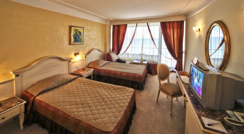 в курортном комплексе Солнечный День, в 16 км от аэропорта города Варна, в 10 км от центра города, на самом берегу моря.